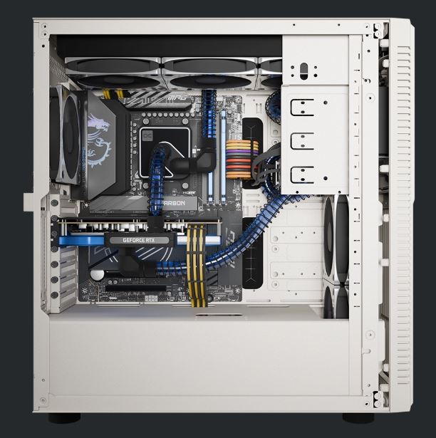 Внутри же — совершенно другая реальность. Покупатель может получить конфигурацию с флагманским процессором AMD Ryzen 9 9950X3D, видеокартой NVIDIA GeForce RTX 5090 и сверхбыстрой памятью Kingston FURY. Система жидкостного охлаждения разработана совместно с Alphacool, а ее помпа установлена в отсек для дисковода — как дань ушедшей эре.