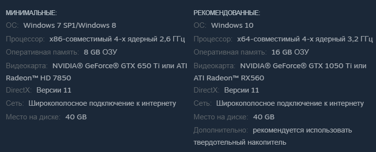 Ну и системные требования: