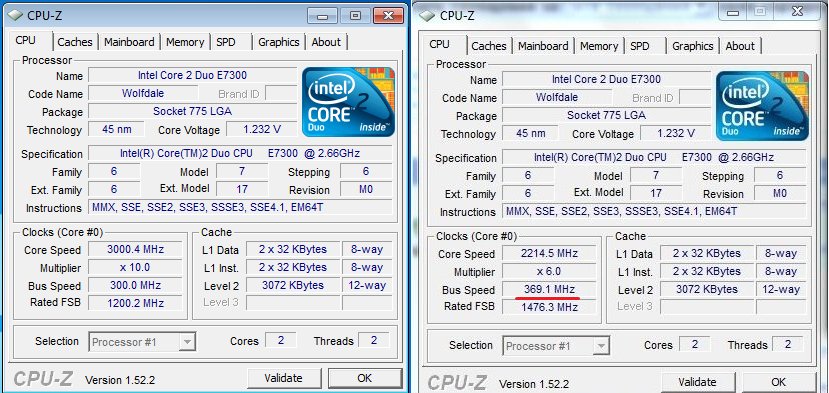 Сокет 775 @ E7300 : разгон на разной системный логике