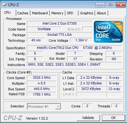 <br/>Как мы знаем , проц построен на ядре Wolfdale , по техпроцессу 0.45нм , это сулит низкое тепловыделение и высокий разгонный потециал .
