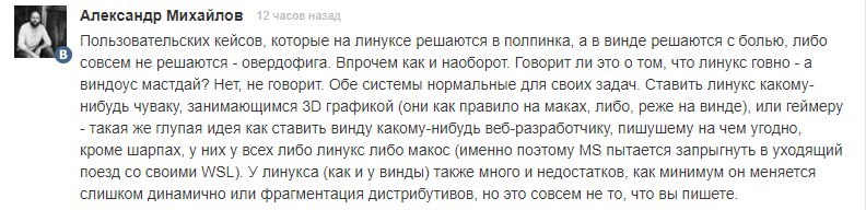И сейчас дистрибутивы Linux часто выставляют именно так, мол, приходите у нас всё прекрасно работает, всё удобно и дружелюбно для пользователей, и вообще многие кто приходят больше никогда не возвращаются назад в Windows, да, прямо так и написано "Most of our users come from Windows and they never look back":
