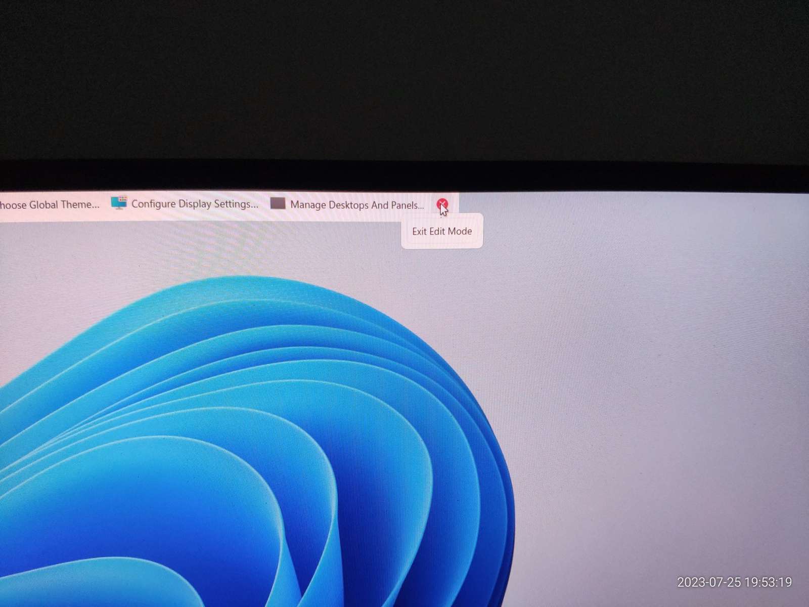 В прошлой части ковыряясь с языковой панелью я случайно клонировал "лупу" на панели задач, так вот, чтобы удалить лишние значки, нужно входить в режим редактирования и только после этого можно удалить лишнее, причём делать это следует крайне аккуратно, ведь в режиме редактирования стоит только навести курсор хоть на что-нибудь, как сразу же всплывают всякие меню с кнопочками на которые можно очень легко случайно нажать и всё поломать даже не заметив что произошло, да и эти меню могут при "удачном" стечении обстоятельств ломать поведение редактора при перетаскивании элементов: