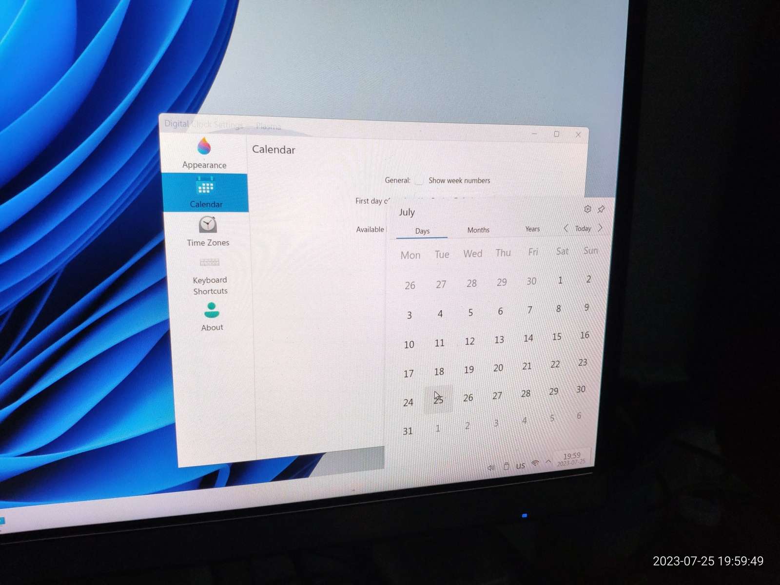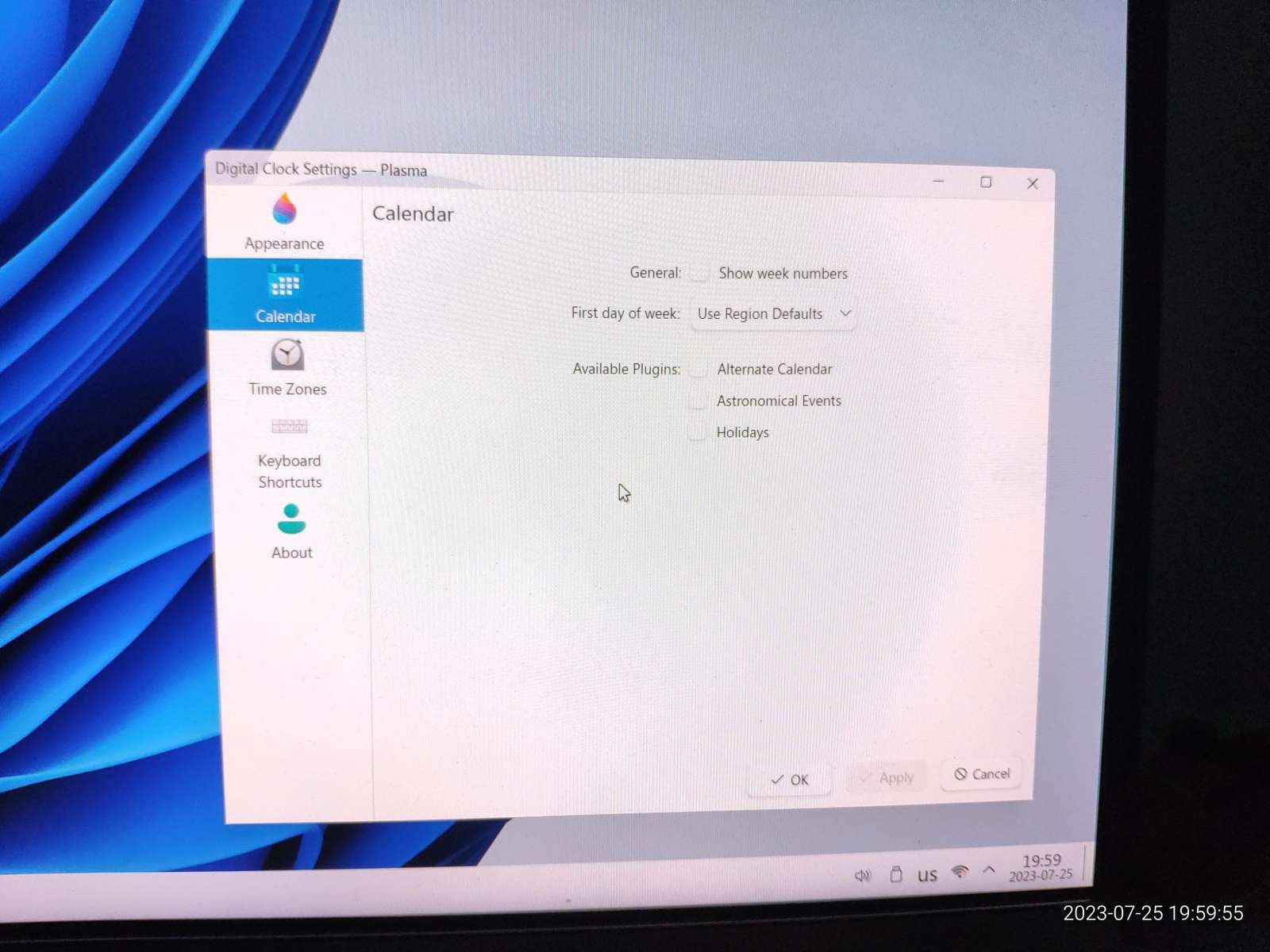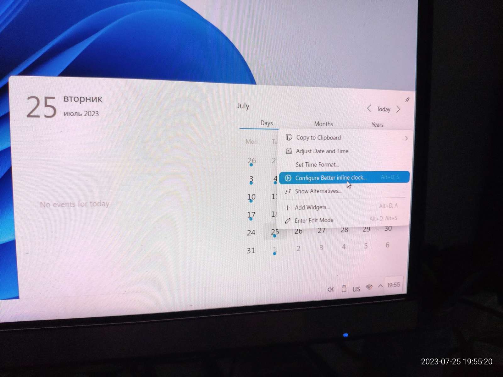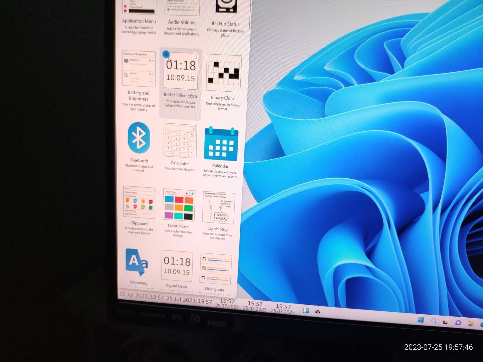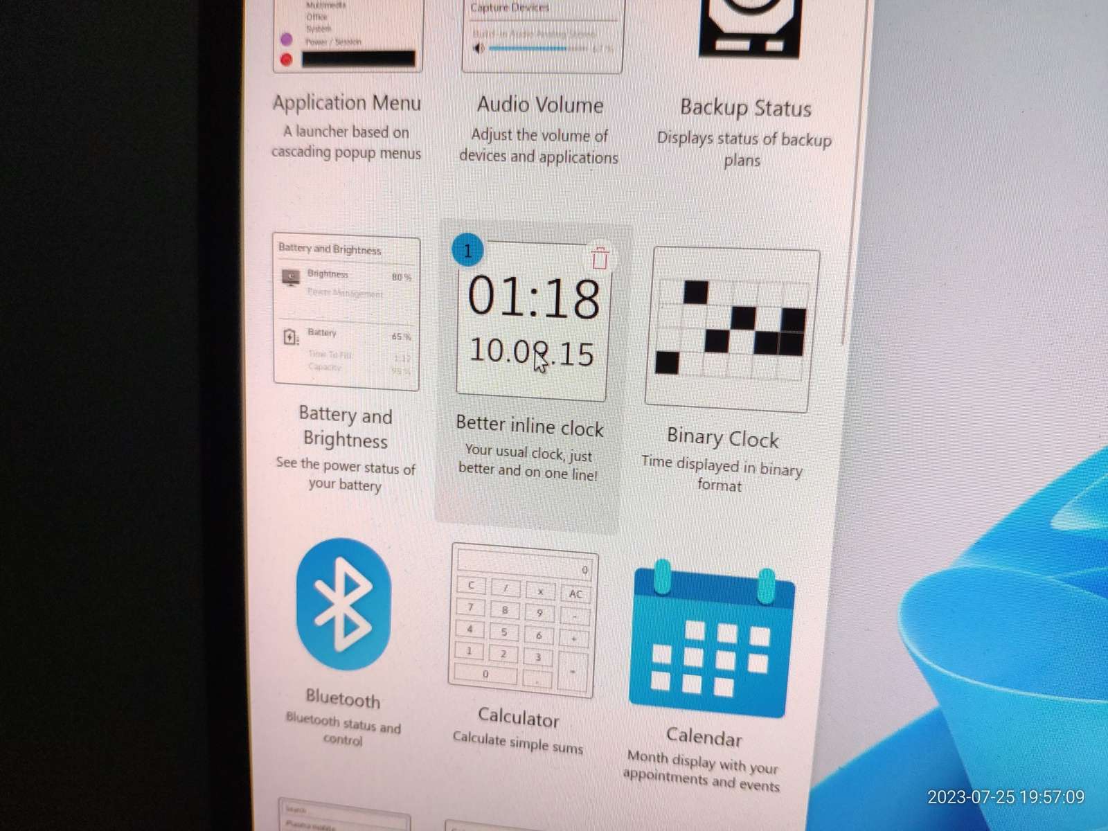Идём дальше, по умолчанию установлены часы "Better inline clock", и по опыту в виртуальной машине я знаю, что это весьма кривые и нефункциональные часы, собственно голубые точки сливающиеся с цифрами календаря уже откровенно намекают: