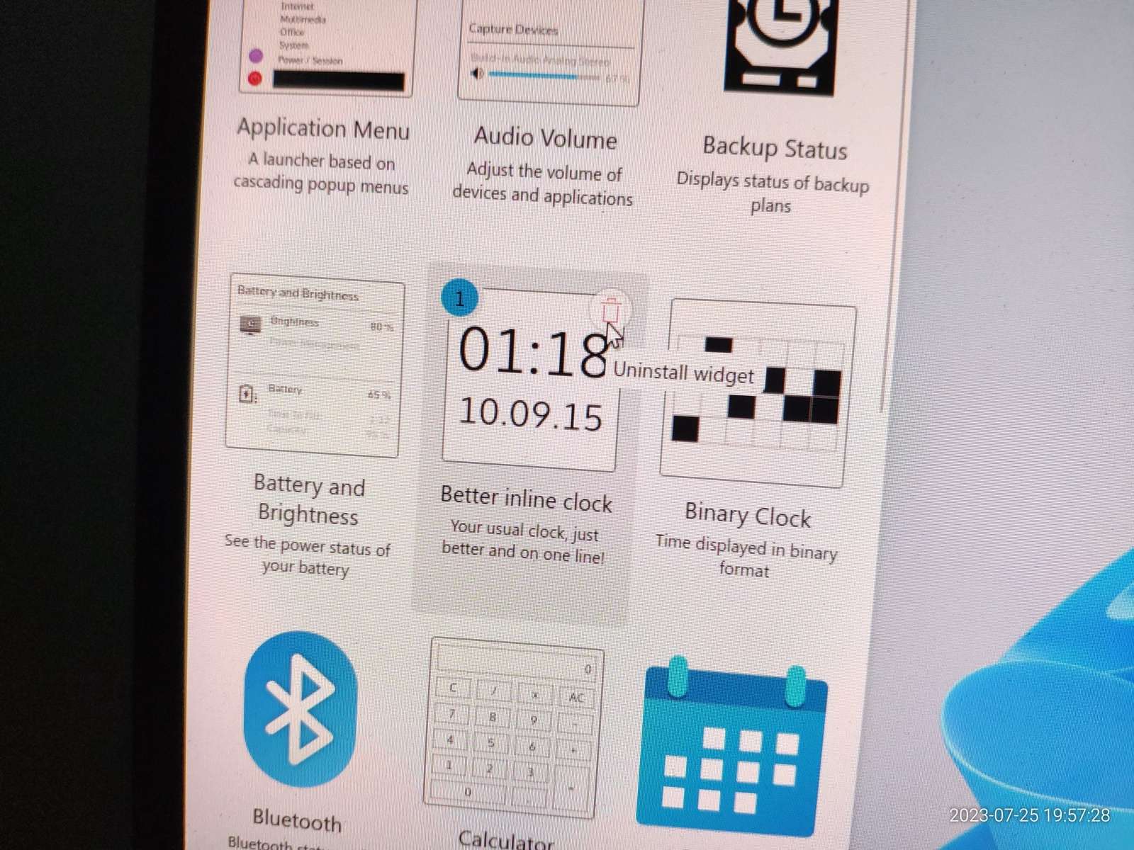 Не поняв как убрать только что добавленный виджет, я натыкал ещё парочку дополнительных виджетов, в левом верхнем углу виджета показывает количество созданных виджетов, а в правом верхнем углу есть кнопка удаления, логично что она должна удалить созданные виджеты количество которых отображено слева? Но нет, эта кнопка полностью удаляет виджет из системы, а как его потом заново установить без доступа к интернету я не представляю: