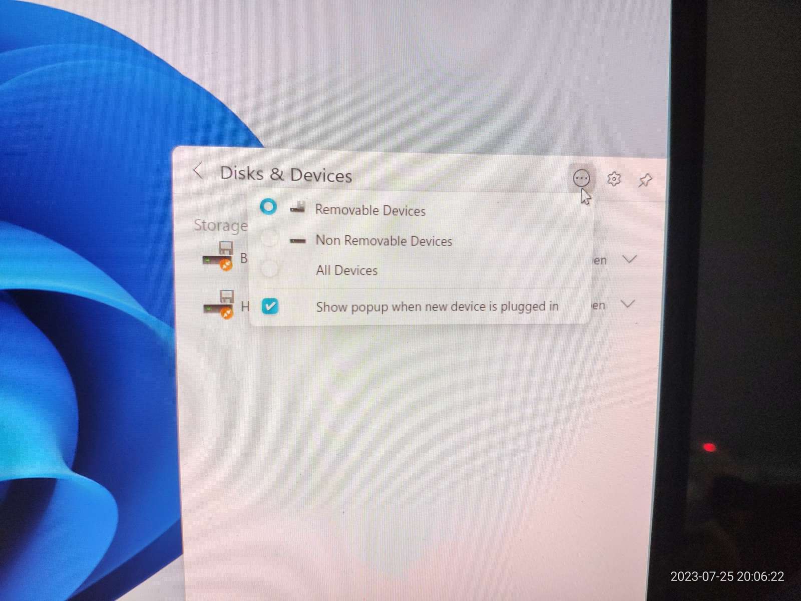 Следующий элемент системного трея это "диски и устройства", и здесь непонятен смысл дополнительных настроек, можно настроить автоматическое монтирование устройств, но при этом подключенный внешний HDD и USB накопитель не отображены в списке как "подключенные устройства", настройки вроде и есть, а настраивать нечего, разве что установить автоматическое монтирование для всех накопителей: