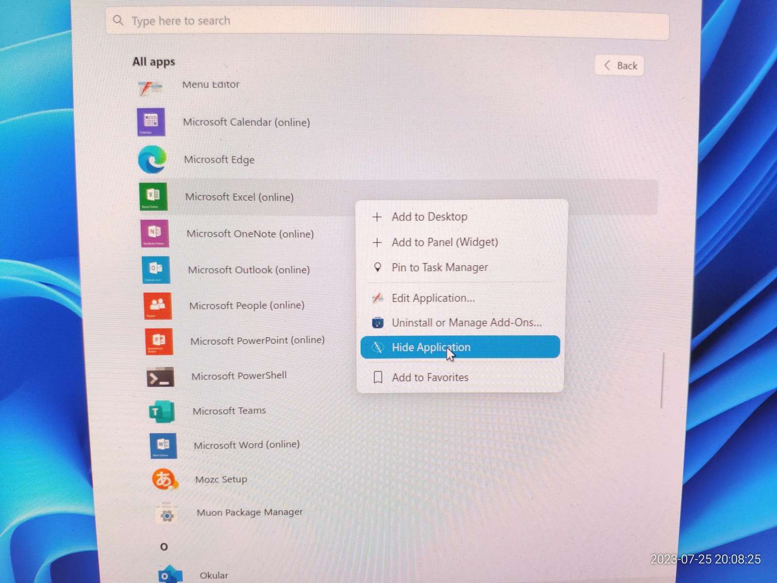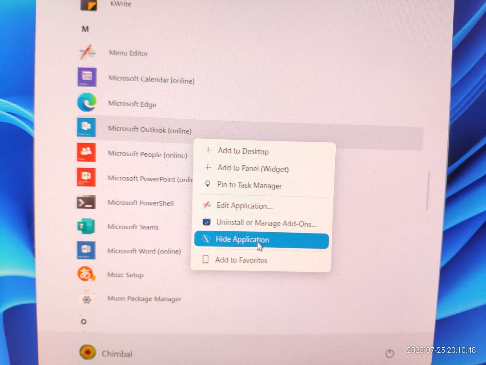 Когда обозревал дистрибутив установленный в виртуальной машине я столкнулся с проблемой, и проблема была в том, что невозможно было скрыть лишние приложения из меню пуск без перезагрузки системы...