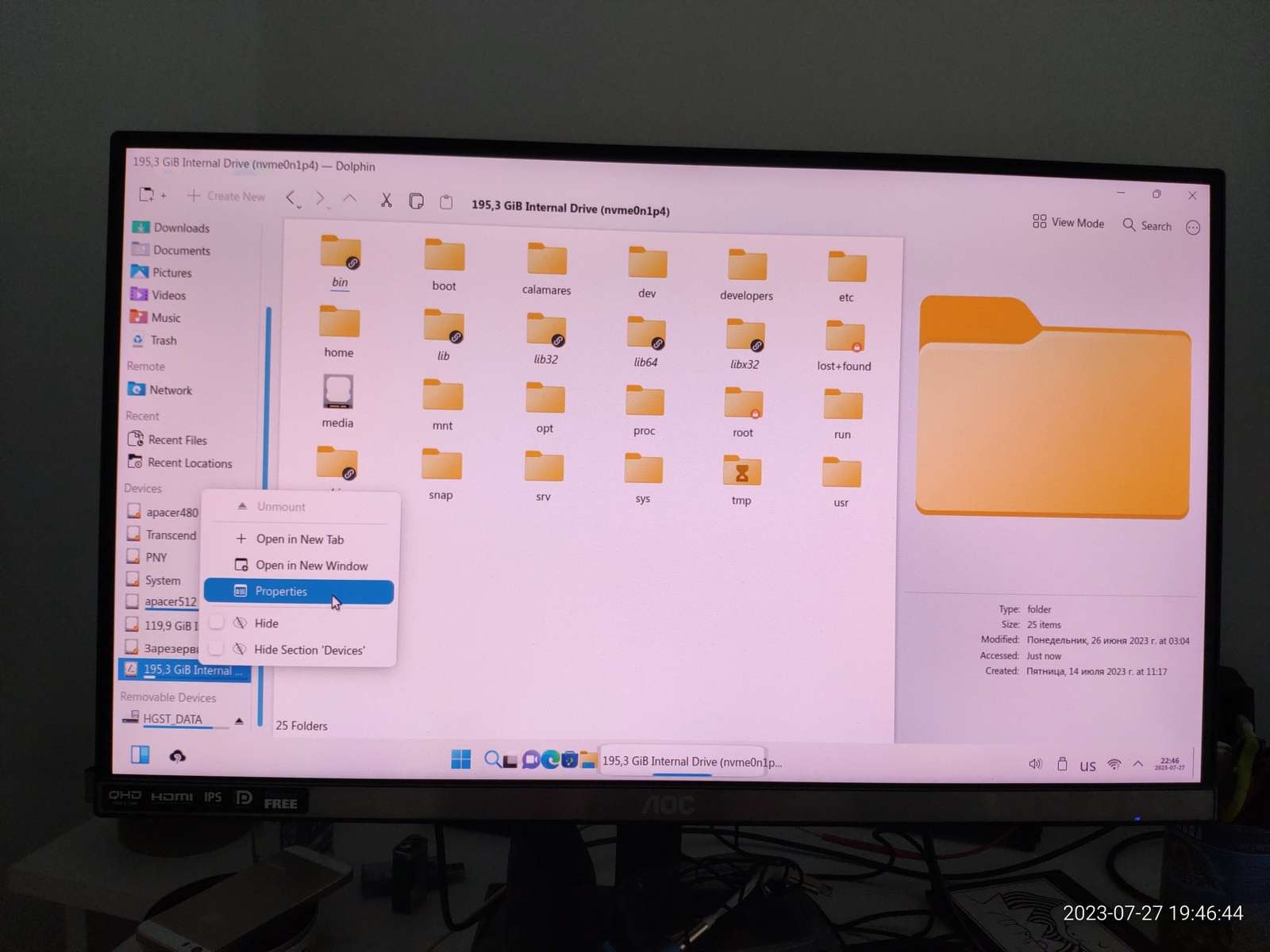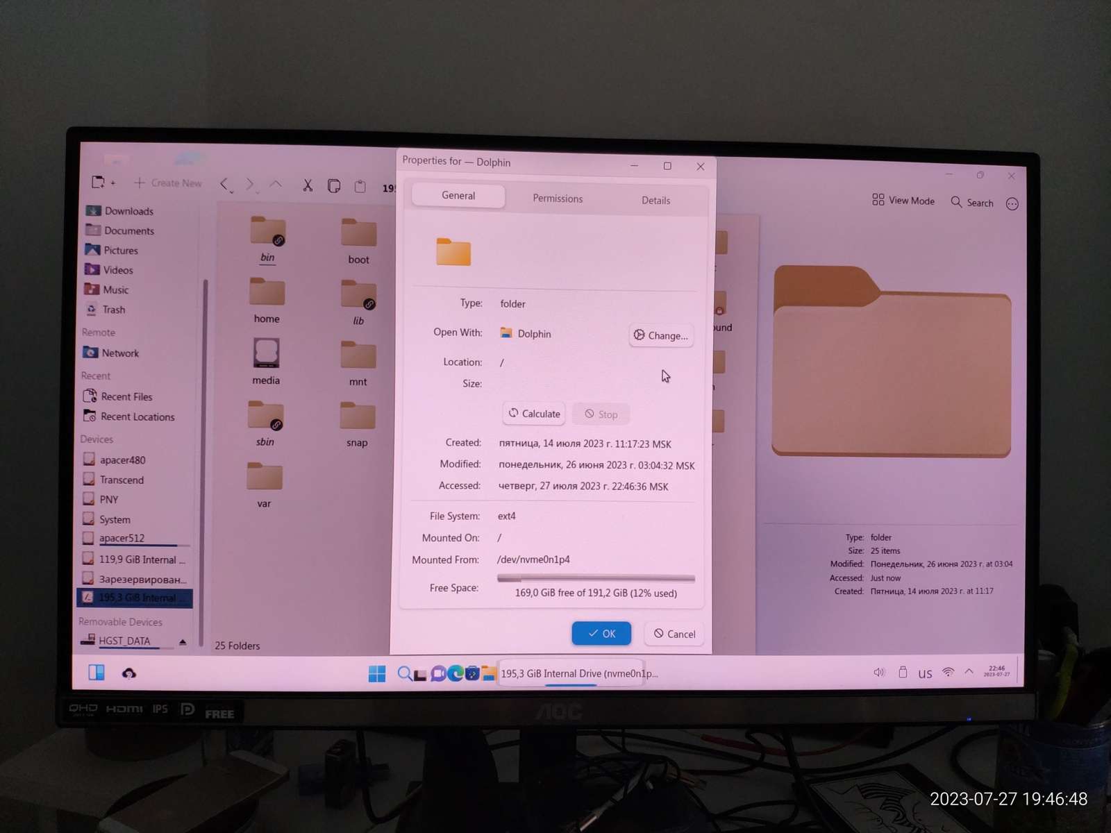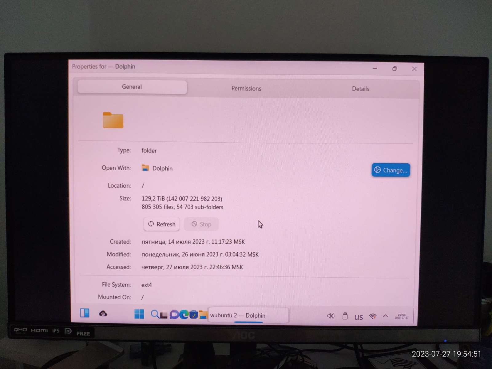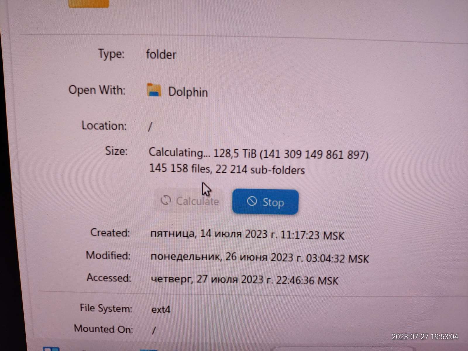 При взаимодействии с интерфейсом всё начало ломаться, я просто хотел посмотреть сколько занимают места на диске все файлы, но получил цифры на уровне 129.2 ТиБ и 805 тысяч файлов, и это у меня ещё голая система, если честно я даже офигел от количества файлов...