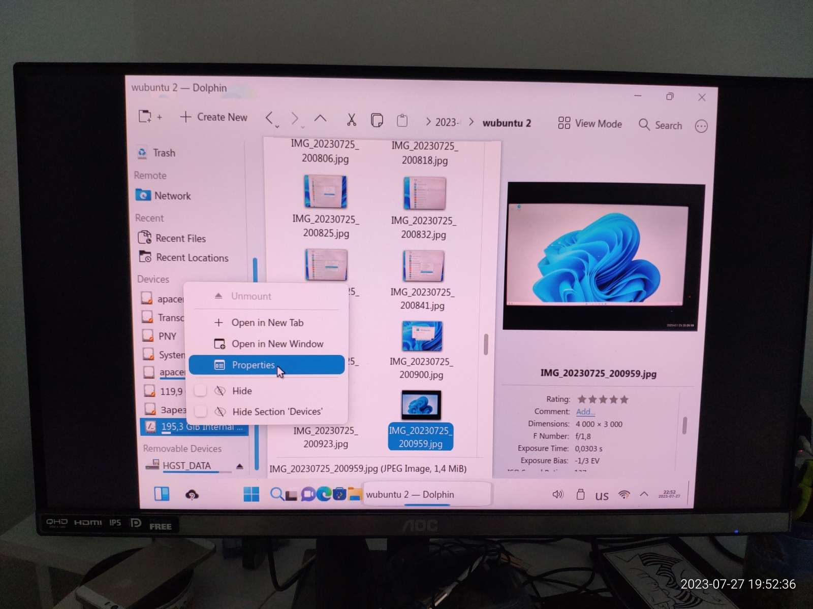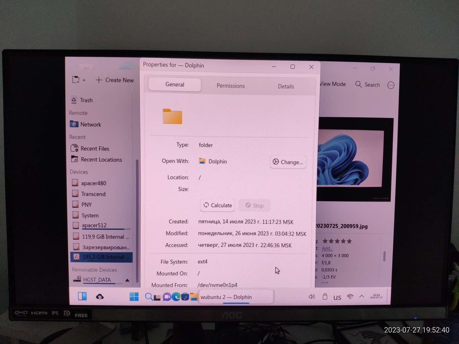 И да, панель подробной информации должна отображать информацию только выделенного файла, но в дистрибутиве Wubuntu данная панель отображает информацию о любом файле который просто попадает под курсор мыши, ужасное и неправильное поведение, ну и растяжение окна во весь экран не решает проблему около нулевой информативности панели, большинство информации вылазит за пределы окна и нужно использовать полосу прокрутки: