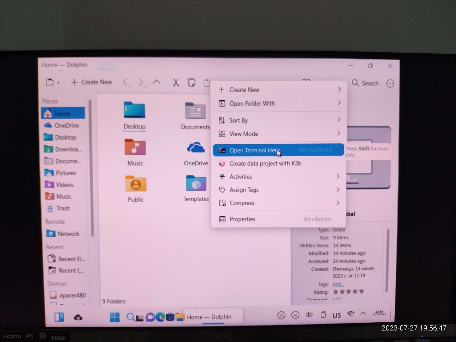 Точно, я же не проверил терминал, но увы, мне пришлось постараться, чтобы сфотографировать окно терминала сразу же исчезающее после запуска, и эта проблема чертовски бесит, особенно когда нужно вызвать терминал в конкретном каталоге, чтобы запустить приложение с особыми параметрами запуска, это просто невозможно, терминал исчезает сразу же после запуска: