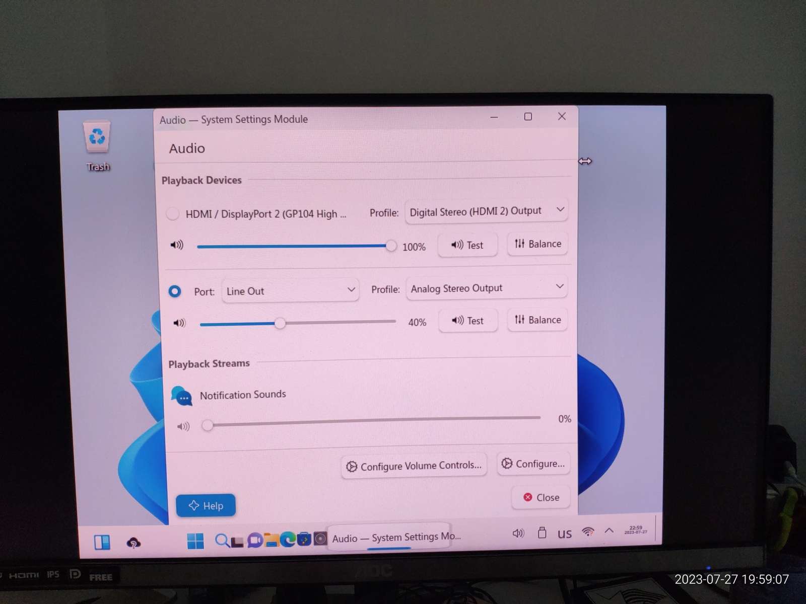 Ну хотя бы окно настроек аудио устройств вроде неплохо живёт: