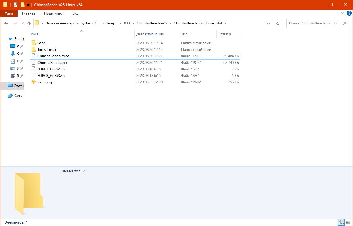 Конечно не забыл и про тестовые приложения, в качестве основного тестового приложения будет мой же ChimbaBench версии 2.5, само собой есть как 64 битный вариант, так и 32 битный, в том числе версии для Windows, это будет полезно если в дистрибутиве есть встроенный Wine. Дополнительные инструменты (Tools_Linux) разместил в корне папки для удобства, но вероятно они не пригодятся, думаю пока хватит: