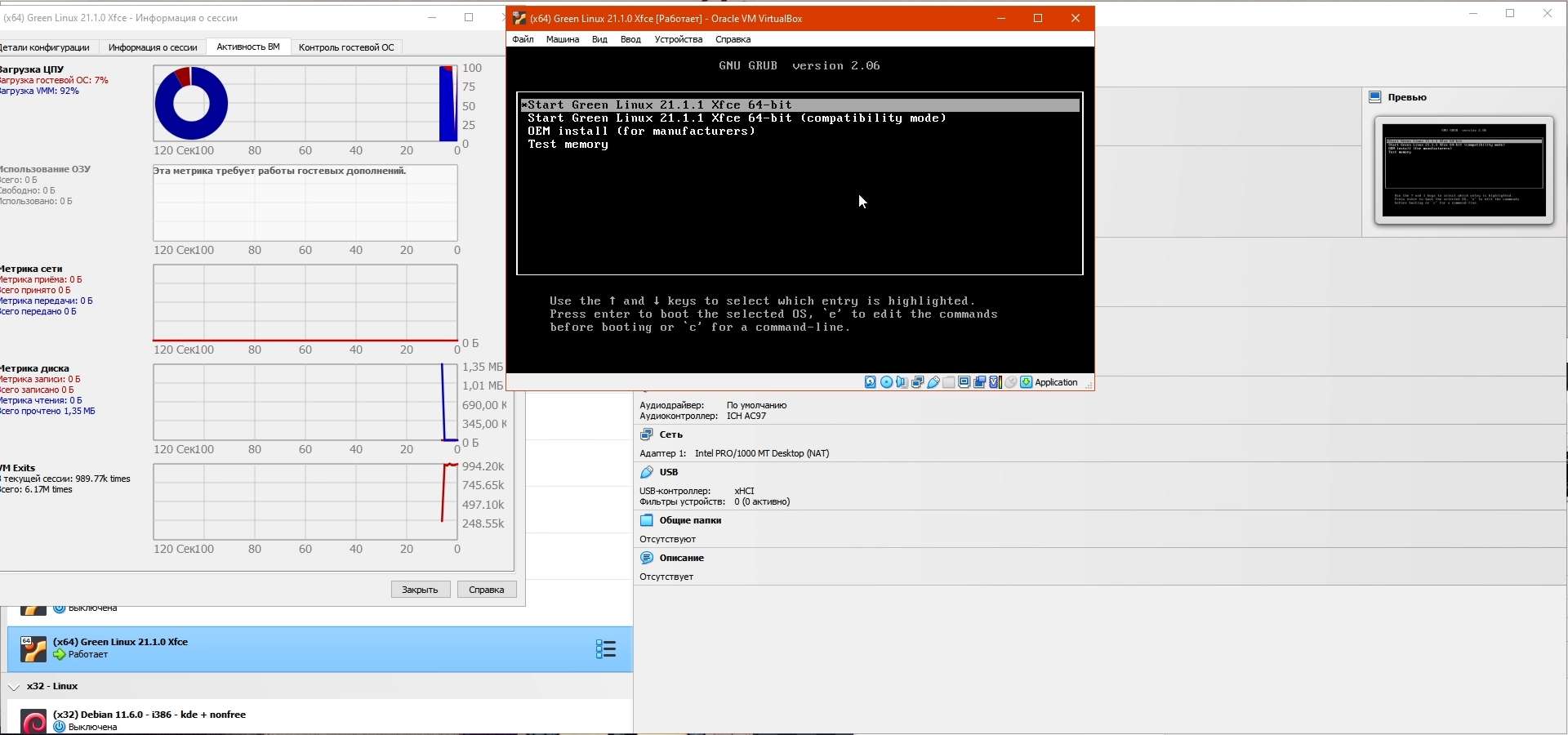 А сейчас время проверять Green Linux 21.1.0 Xfce на соответствие своим же требованиям к дистрибутивам.