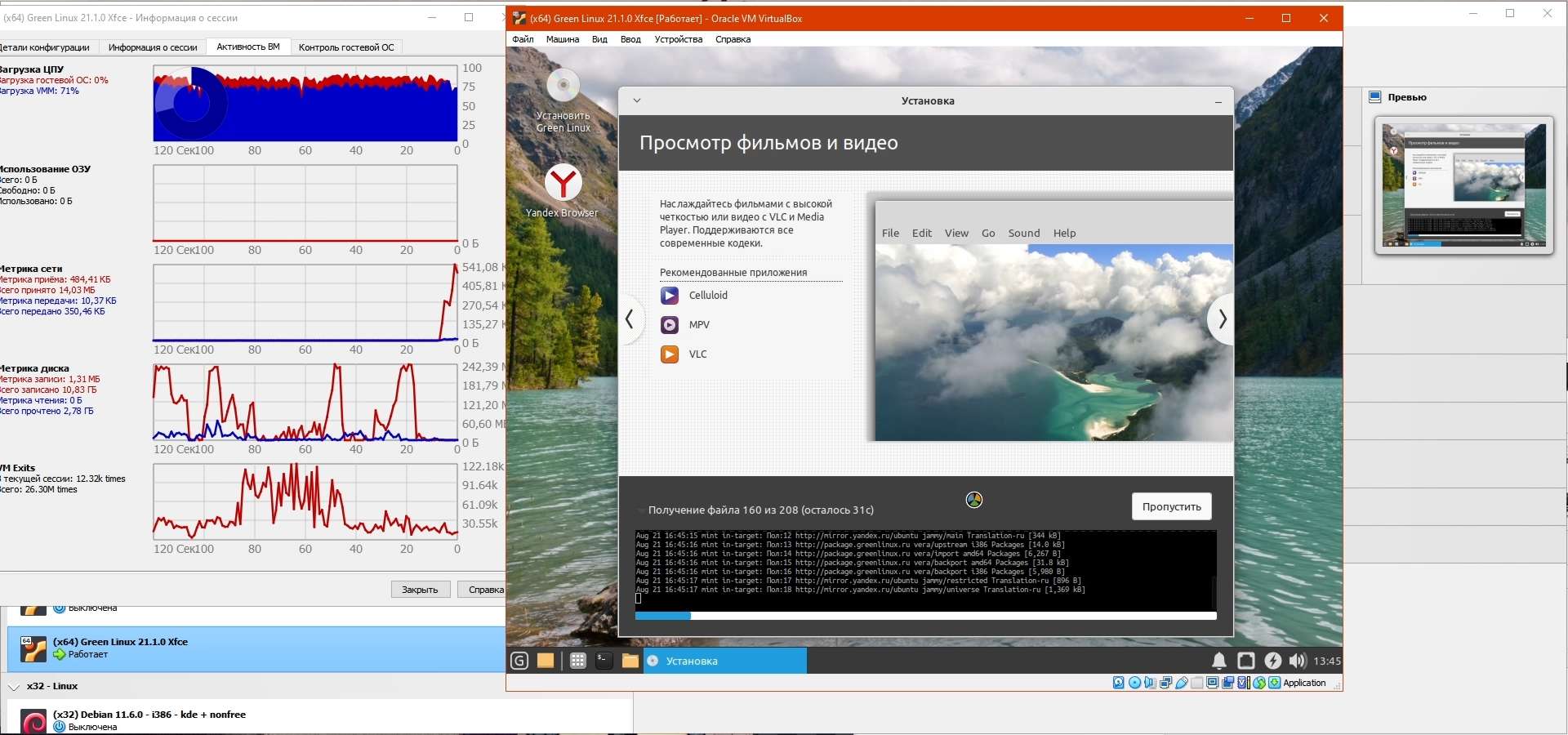 Ради интереса проверил видео, всё конечно работает, с производительностью проблеем не обнаружил, но есть очень заметные разрывы изображения внизу, но думаю это простительно дистрибутиву: