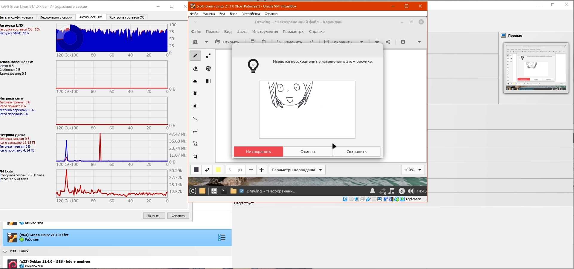 Итого Green Linux 21.1.0 Xfce даже хуже Cinnamon версии, ибо растягивать кривые "из коробки" окна раздражающее занятие, ведь нужно через микроскоп искать нужный пиксель на границе окна, чтобы растянуть.
