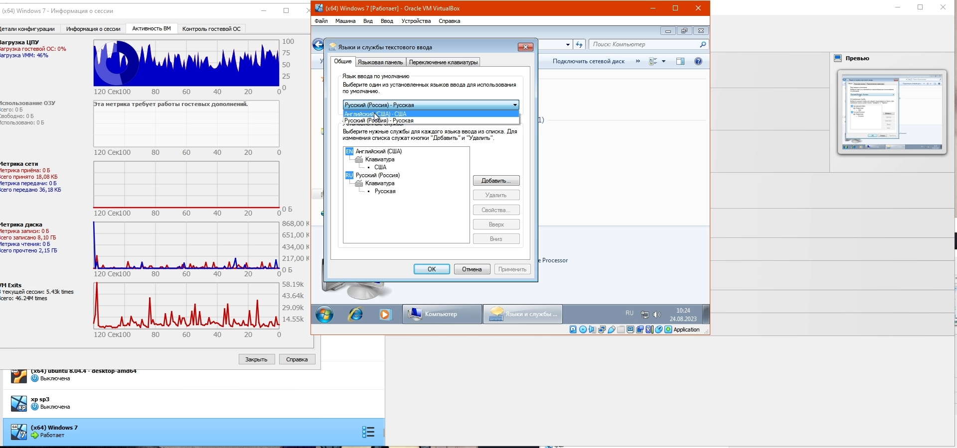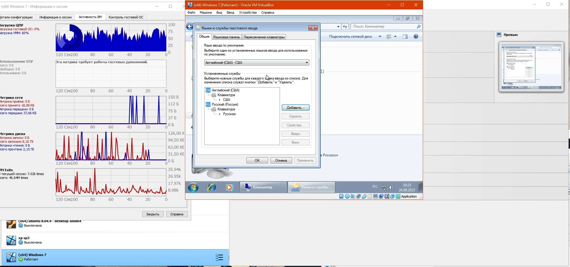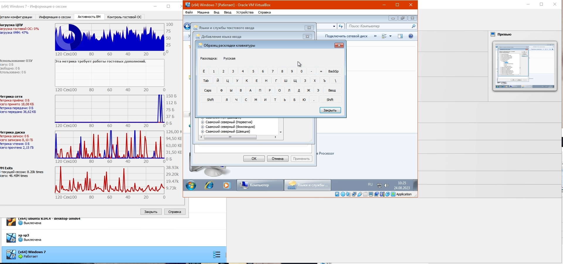 Перехожу к языковой панели и клавиатуре, NumLock в виртуальной машине почему-то по умолчанию оказался выключен независимо от операционной системы, однако Windows 7 по умолчанию сохраняет последнее состояние NumLock и включает если он был включен, это хорошо, но критерий оценки нужно будет пересмотреть с учётом этого нюанса.