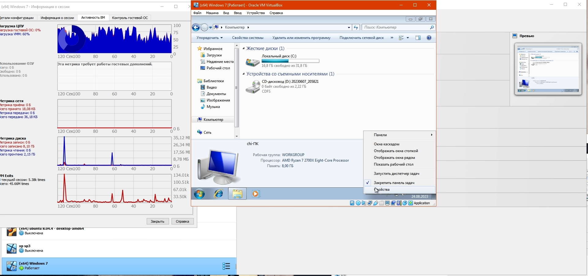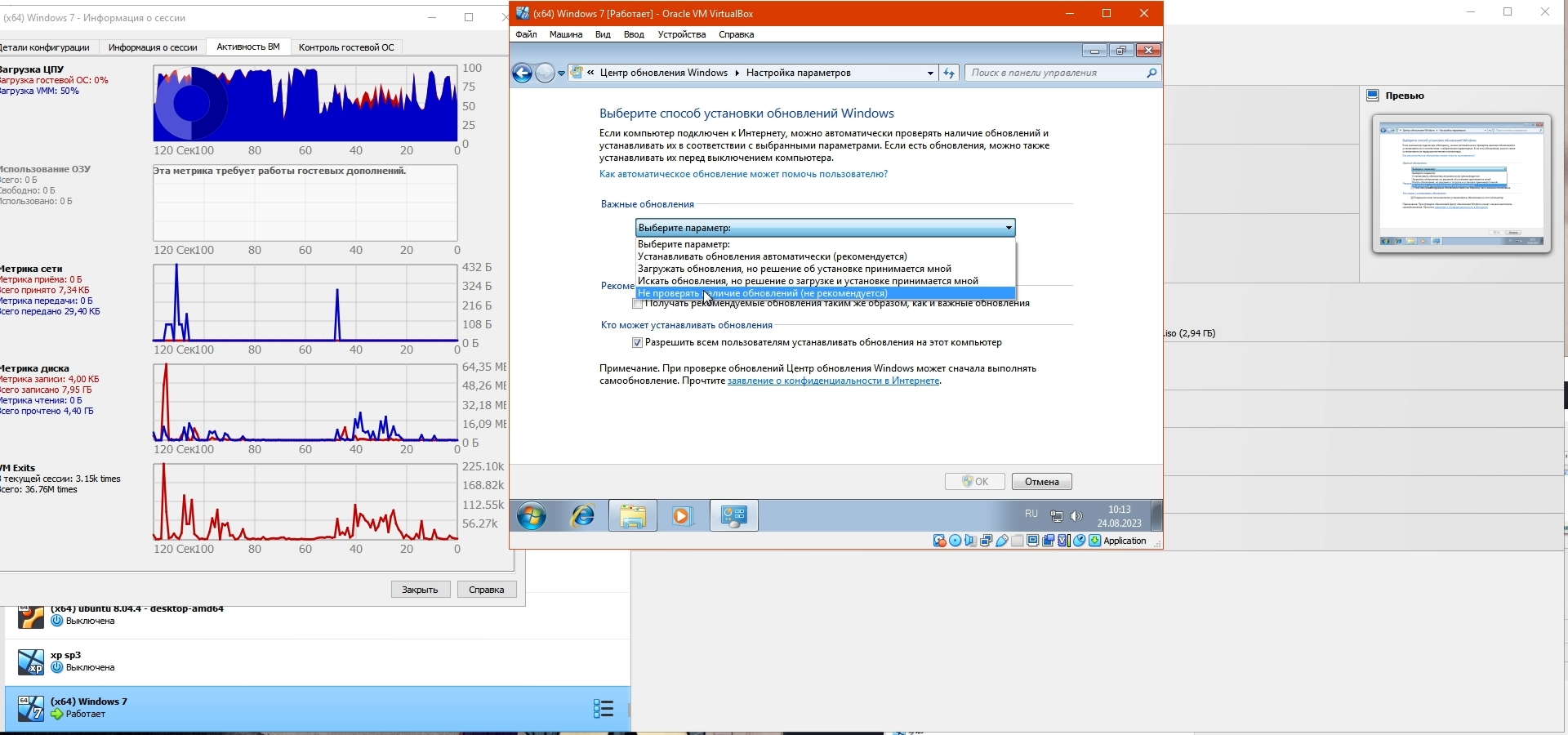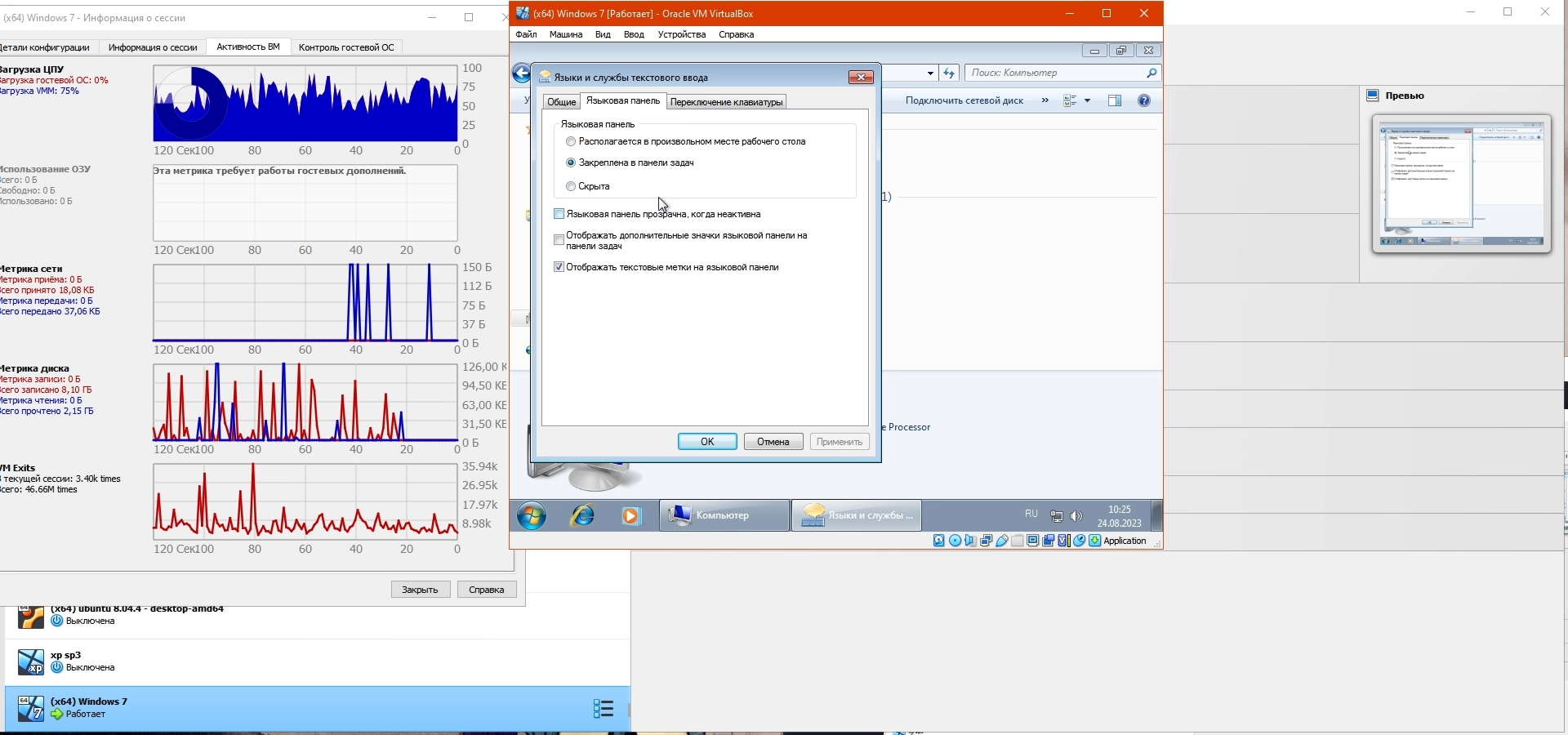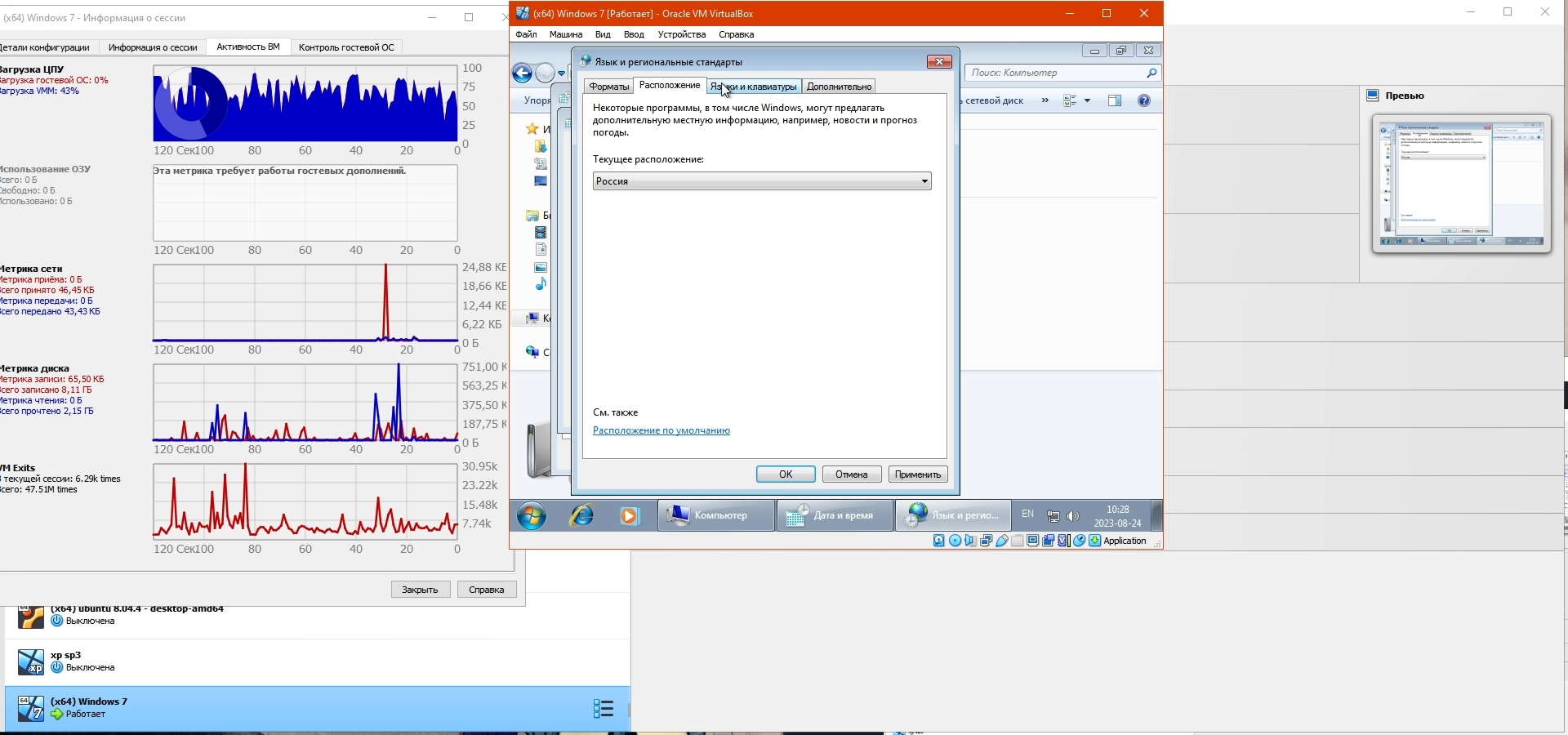 Перехожу к языковой панели и клавиатуре, NumLock в виртуальной машине почему-то по умолчанию оказался выключен независимо от операционной системы, однако Windows 7 по умолчанию сохраняет последнее состояние NumLock и включает если он был включен, это хорошо, но критерий оценки нужно будет пересмотреть с учётом этого нюанса.
