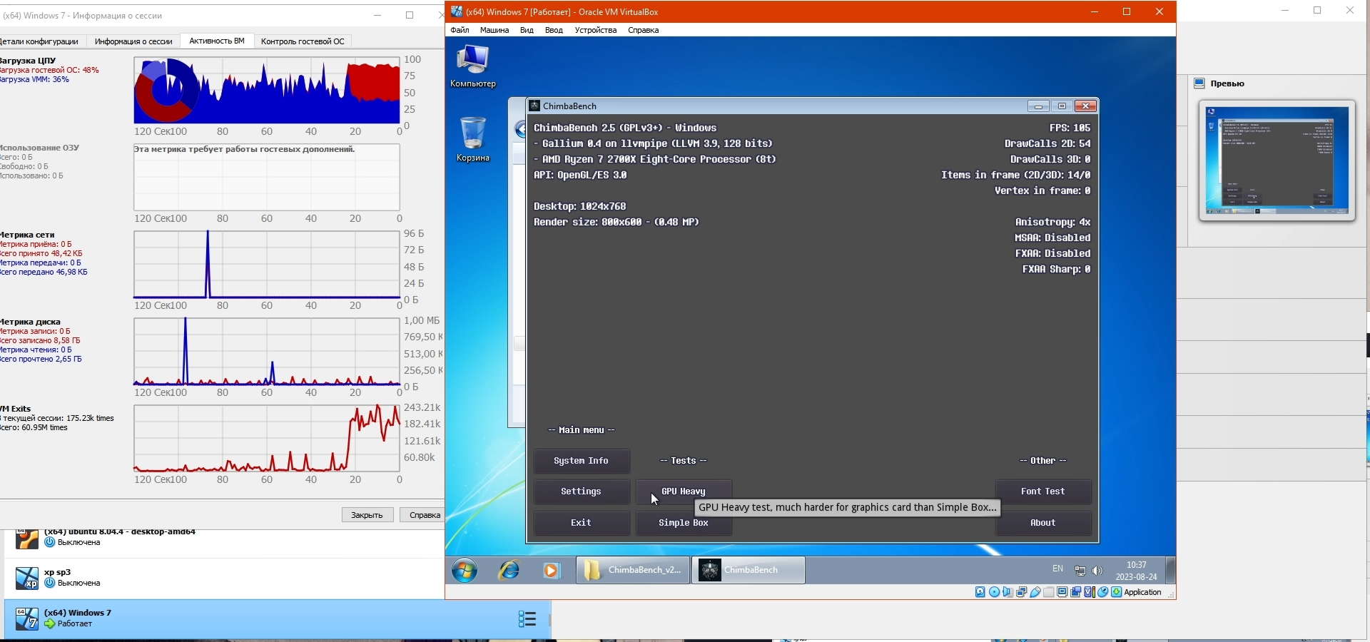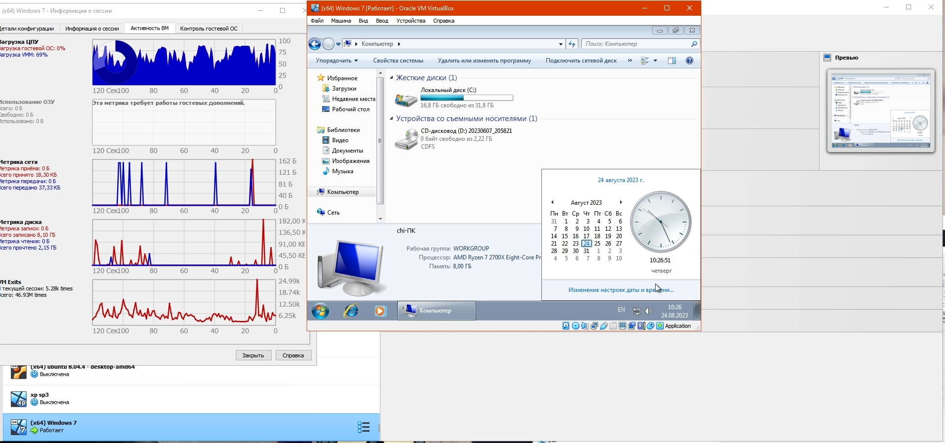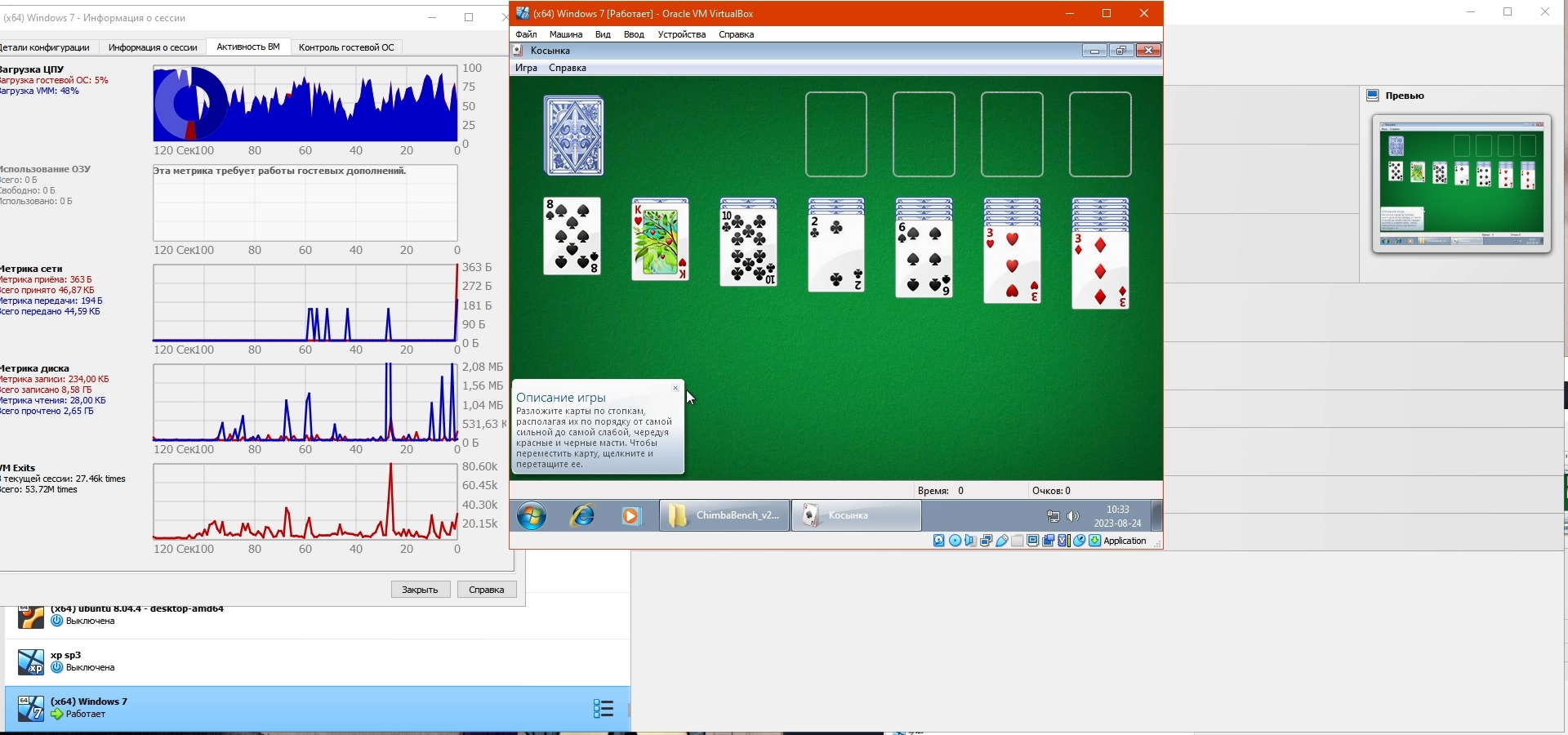 Куда без старой доброй "Косынки"! Правда она ругалась на отсутствие драйвера видеокарты, однако всё равно работает, впрочем, это же виртуальная машина, какие тут нормальные драйверы на видеокарту могут быть...