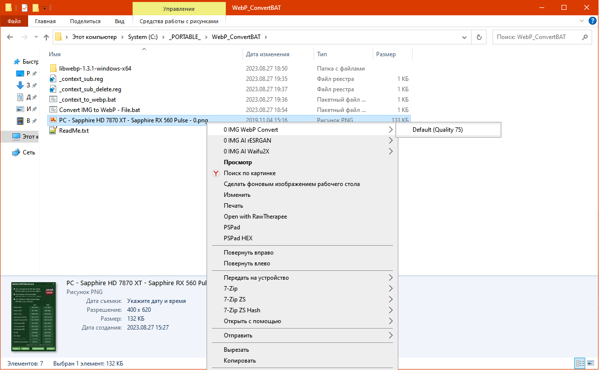 Хм, пожалуй стоит сделать сборку для быстрого конвертирования изображений через контекстное меню проводника, похоже пора открывать новый репозиторий...
