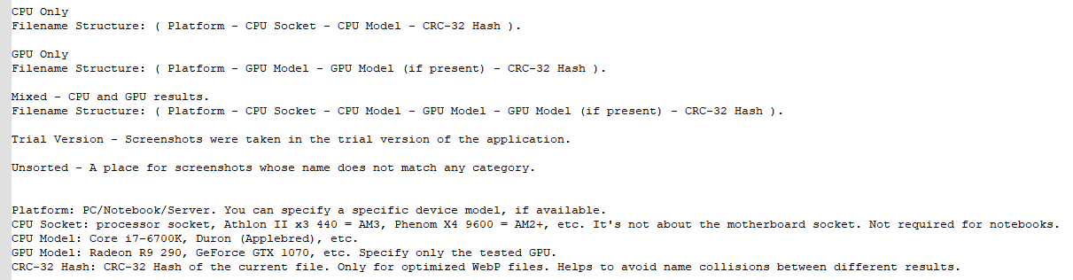 В процессе работы над имеющимися скриншотами была сформирована структура для имён файлов и результатов, она возможно будет ещё изменена: