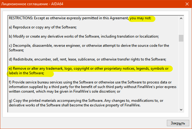 Но AIDA64 проприетарная штука, и в её лицензии сказано, что нельзя удалять или изменять любые торговые марки, логотипы, копирайты и т.п., хоть это и относится к программе, но это скорее всего можно трактовать и относительно скриншотов, ведь на скриншоте запечатлено окно программы: