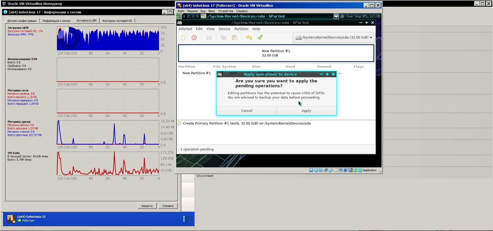 Хорошо хоть догадались в меню "пуск" добавить Gparted, особенно меня позабавило окно создания таблицы разделов, оно просто не влезло в экран, хотя пустого места целая гора и горка рядом, в общем классический косяк интерфейса свойственный дистрибутивам Linux:
