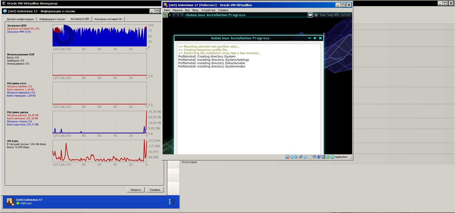 В общем установка завершена, теперь нужно достать диск и перезагрузить систему, ведь дистрибутив сам не извлекает диск после установки, и перезагружать тоже не умеет систему, какой-то недоразвитый: