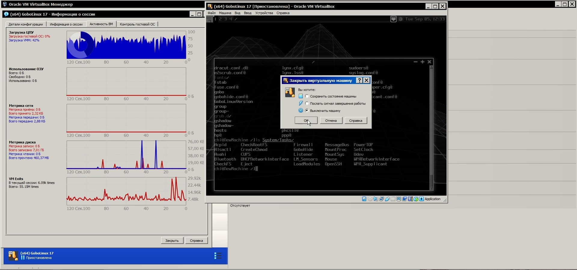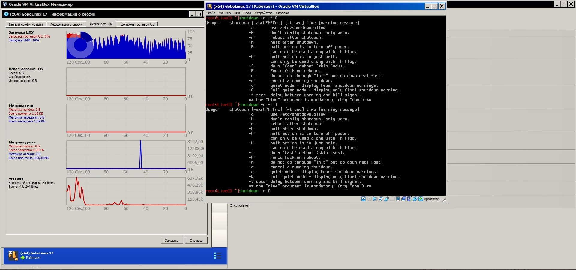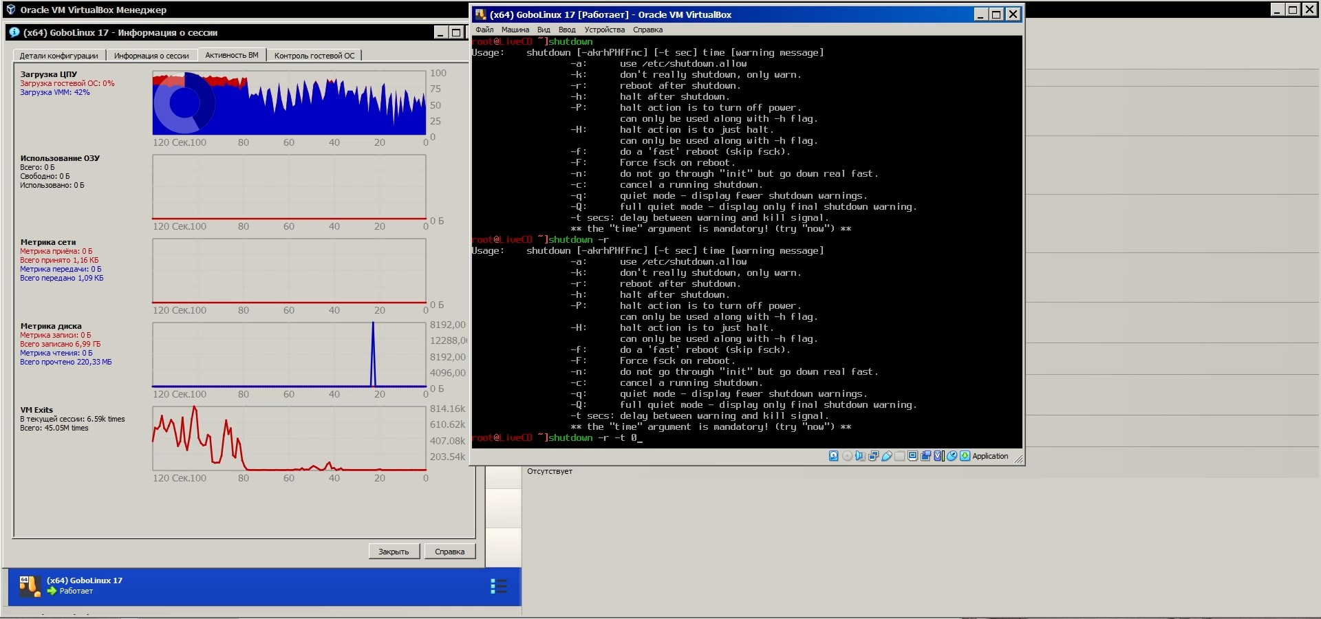 Но с выключением возникли проблемы, "линукс" просто завис и не выключается, похоже не может выключиться потому что загрузочный диск был извлечён, но его ведь нужно было извлечь иначе после перезагрузки система с него загрузится, а нужно ведь нужно с жёсткого диска грузить, так что выхода нет, делаю жёсткую принудительную перезагрузку: