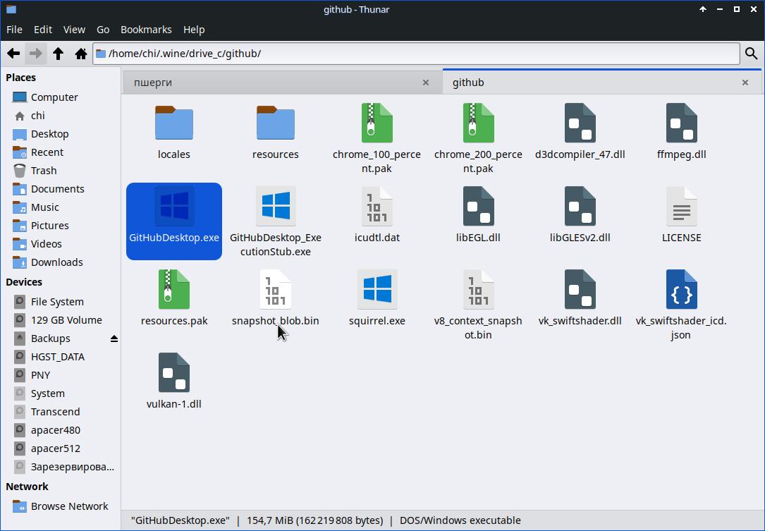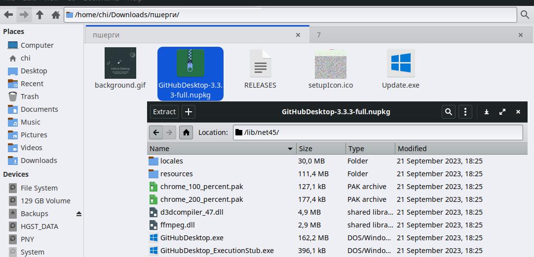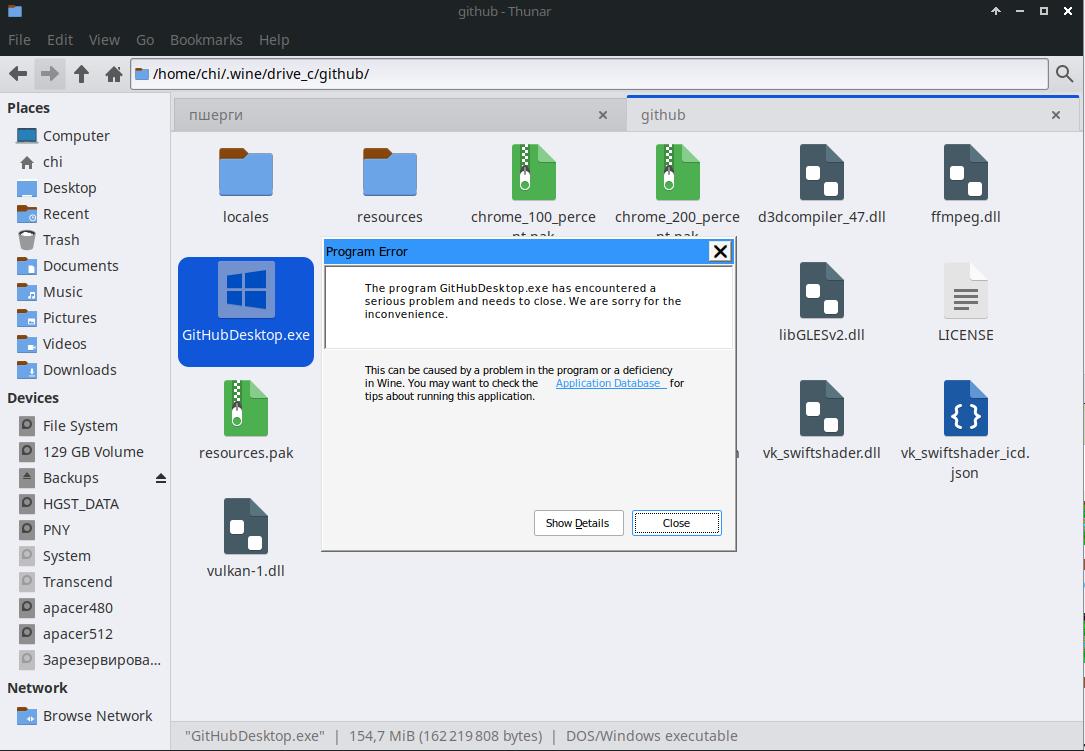 Я всё ещё надеюсь, что выйдет простыми методами получить желаемый результат, а именно, работающий GitHub Desktop в Linux, потому попробую выдернуть его из настоящей Windows засунув в линукс, но это тоже не сработало: