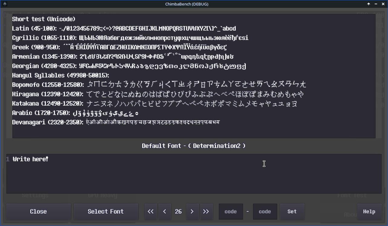 Ещё доработал раздел Font Test, теперь можно вручную выбирать любой диапазон символов Unicode, и даже редактировать вывод: