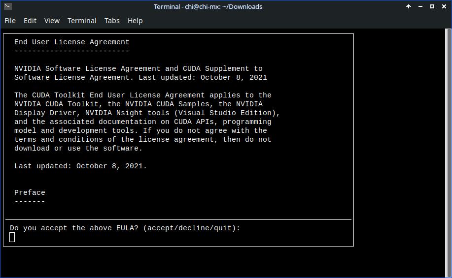 Так или иначе прямо сейчас я точно не смогу установить инструменты, ибо мне наверняка помешает Xorg server, его нужно вручную убивать, чтобы установить драйвер из комплекта CUDA Toolkit (SDK), эх, вот бы как в Windows не закрывая никакие приложения просто взять, и переустановить драйвер видеокарты нажимая кнопку "далее":