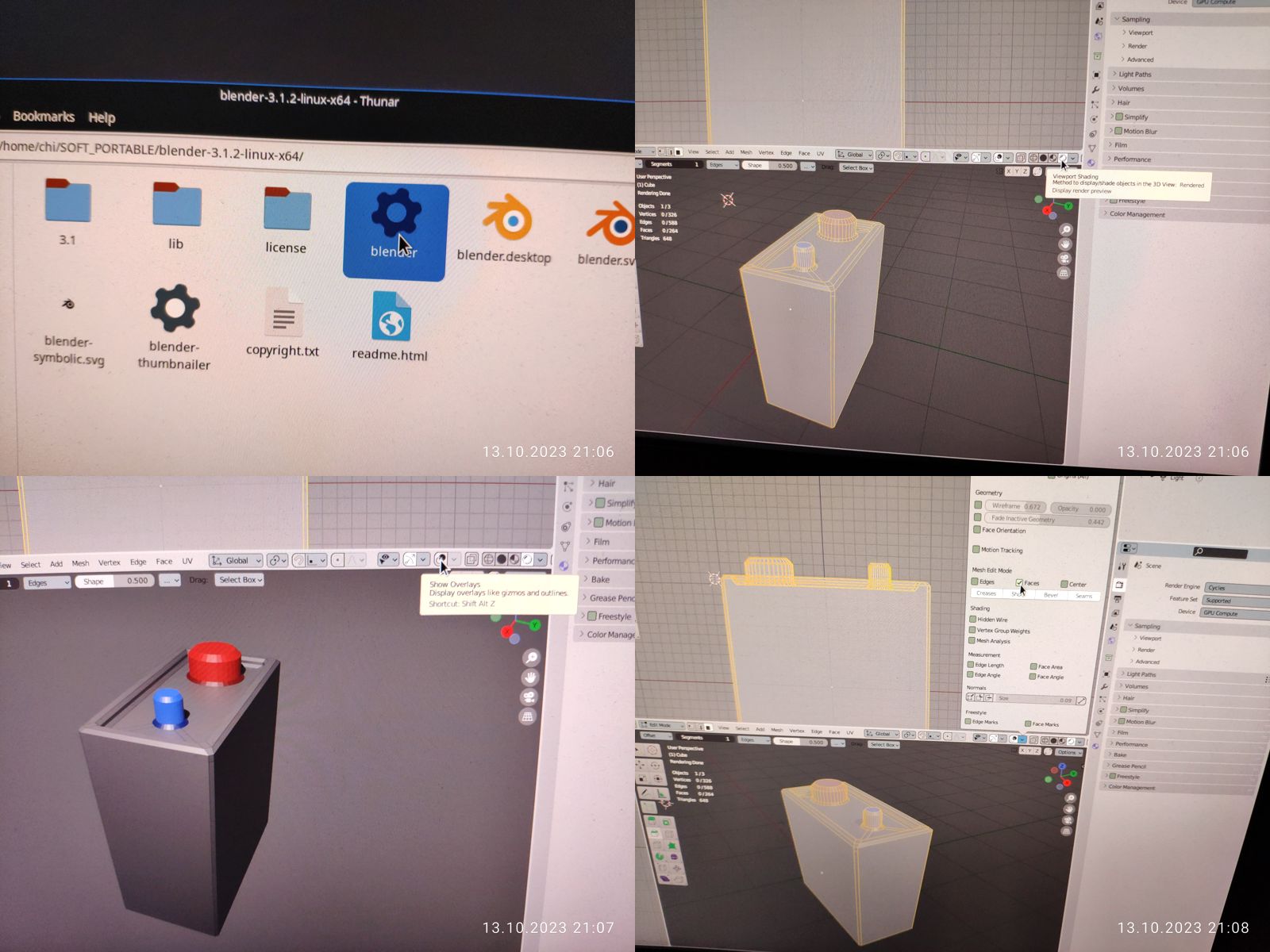 Я уже это говорил, но сейчас у меня Linux, и мне нужно поработать в Blender, что же могло пойти не так под линуксом? Распаковал приложение, запустил, на первый взгляд всё было нормально, здесь видно несколько версий приложения, далее станет ясно "зачем" и "почему":
