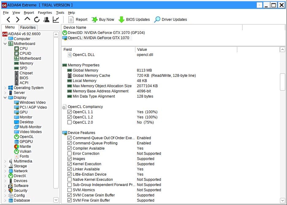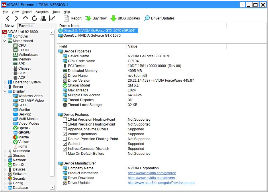 Я специально проверил и другие разделы приложения, вдруг действительно что-то изменили, но никаких изменений относительно старых версий AIDA64 не заметил, вся информация доступна в Trial версии: