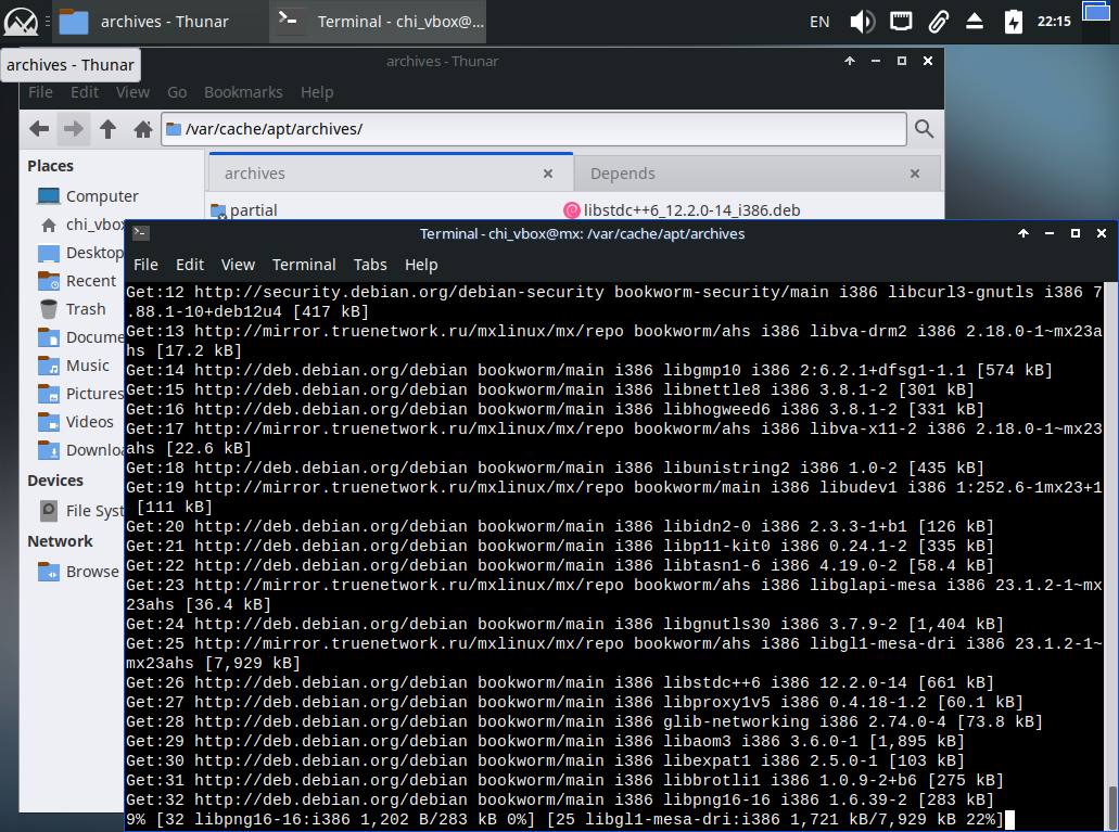 Это довольно скучный процесс, потому не буду сильно заострять внимание, просто скачиваю библиотеки, которые точно нужны для нормального использования системы исходя из личного опыта, обычные пользователи и понятия не имеют что и как качать, именно потому эту всю линуксоидную работу делаю я, тем более сам буду пользоваться этим дистрибутивом, а я очень не люблю, когда начинается пердолинг по вине отсутствующих базовых библиотек в дистрибутиве: