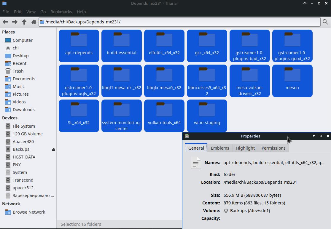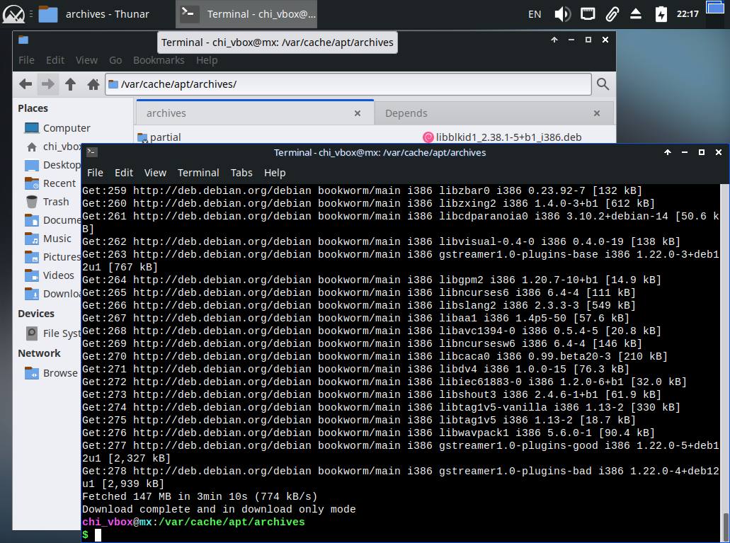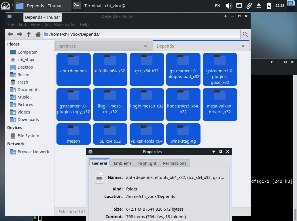 Итого получилось чуть больше 600 МиБ пакетов для установки, но часть из них будет сокращена, ведь каждый пакет с зависимостями загружался по отдельности, там наверняка есть повторяющиеся зависимости, сейчас просто разложил всё по своим местам: