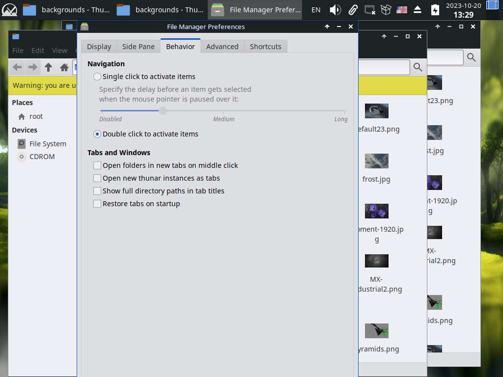 Раз уж запустил проводник, значит и его нужно настроить, в обязательном порядке настраиваю открытие файлов и папок по двойному клику вместо одинарного, а так же исправляю поведение проводника при изменении прав доступа папкам, по умолчанию оно изменяет права только на папку, а должно изменять права как на папку, так и на всё что внутри, как минимум потому что это логично: