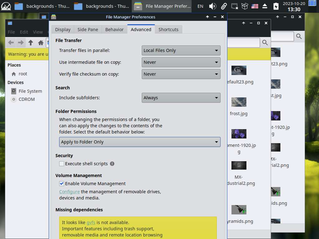 Аналогично настраиваю и проводник запущенный под учётной записью пользователя, ибо сейчас настроил только проводник для "root"...
