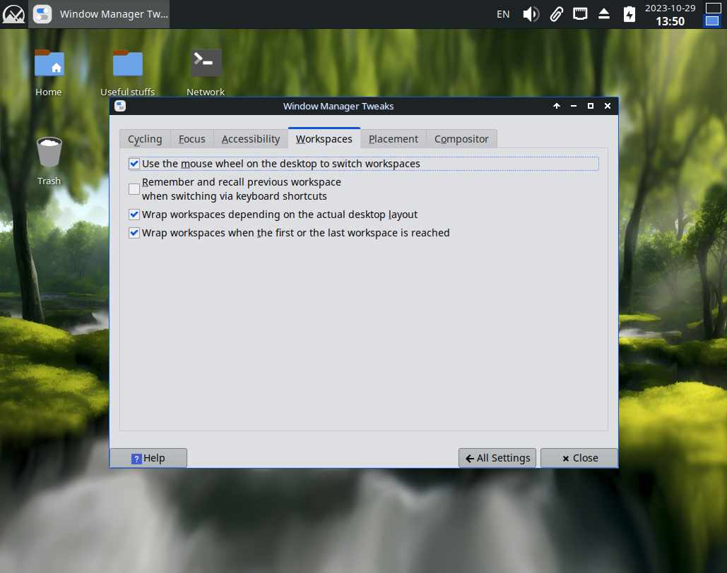В прошлой части были установлены библиотеки необходимые для работы 32 битного софта, ведь я не хочу чтобы дистрибутив был таким же кастрированным, как и большинство других линуксов, но сейчас снова вернёмся к настройке системы, ибо плохо когда рабочие столы переключаются от прикосновения к колесу мыши, нужно исправлять: