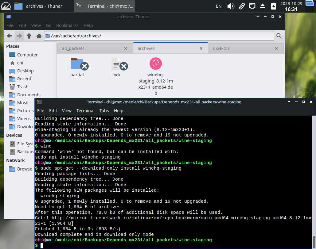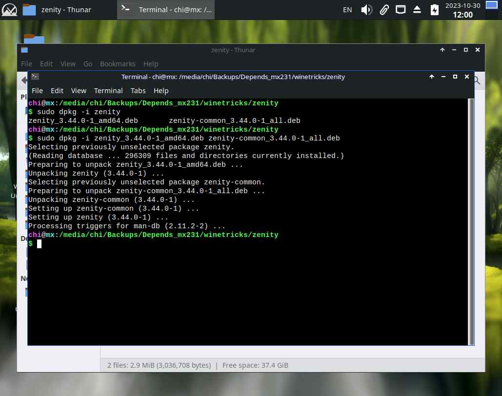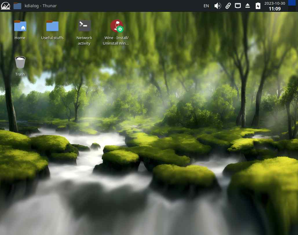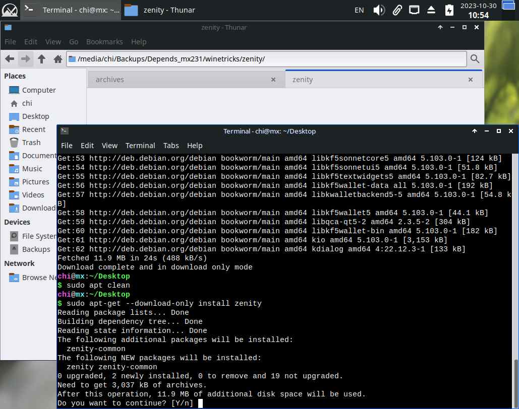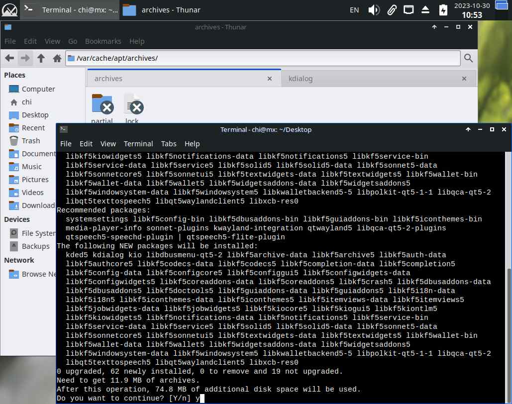 Если вдруг попытаюсь установить заранее подготовленный "kdialog" в чистый MX Linux 23.1, вероятно ничего не выйдет, скорее всего не будет каких-нибудь зависимостей, и эта система пакетов в линуксах самая что ни есть боль для пользователей, ибо банально невозможно заранее подготовить приложение в одном дистрибутиве, и установить его на другом ПК с другим дистрибутивом: