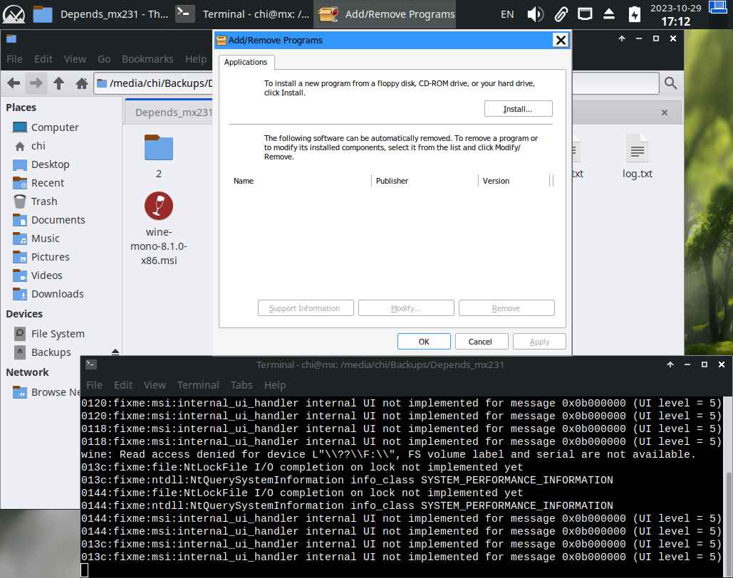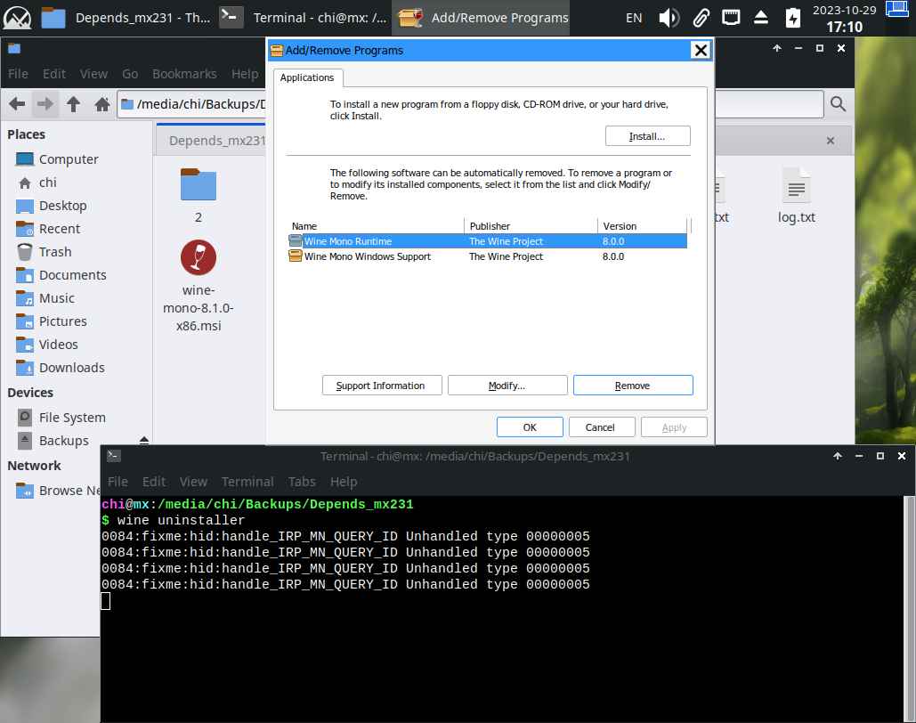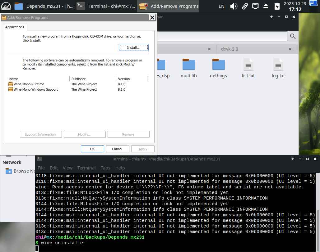 Далее удаляю Wine Mono 8.0.0 и устанавливаю Wine Mono 8.1.0, да, в программе "установки и удаления" не обновляется список после установки приложений, нужно перезапускать вручную, но это уже мелочи: