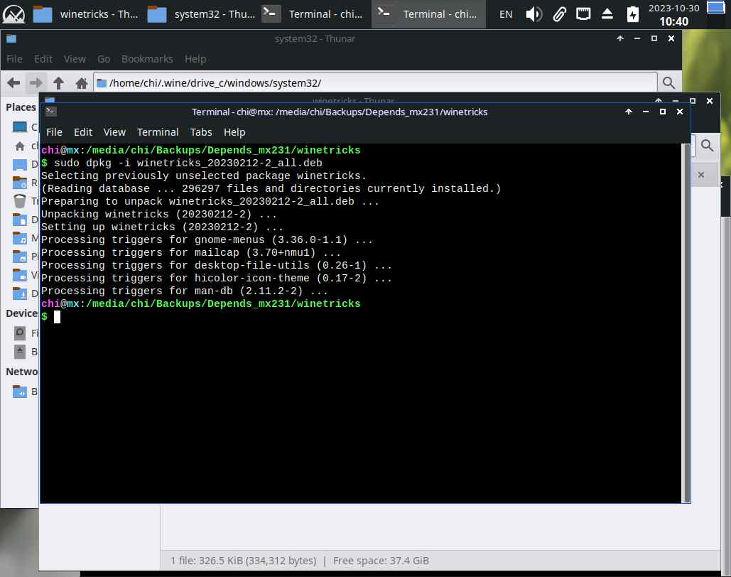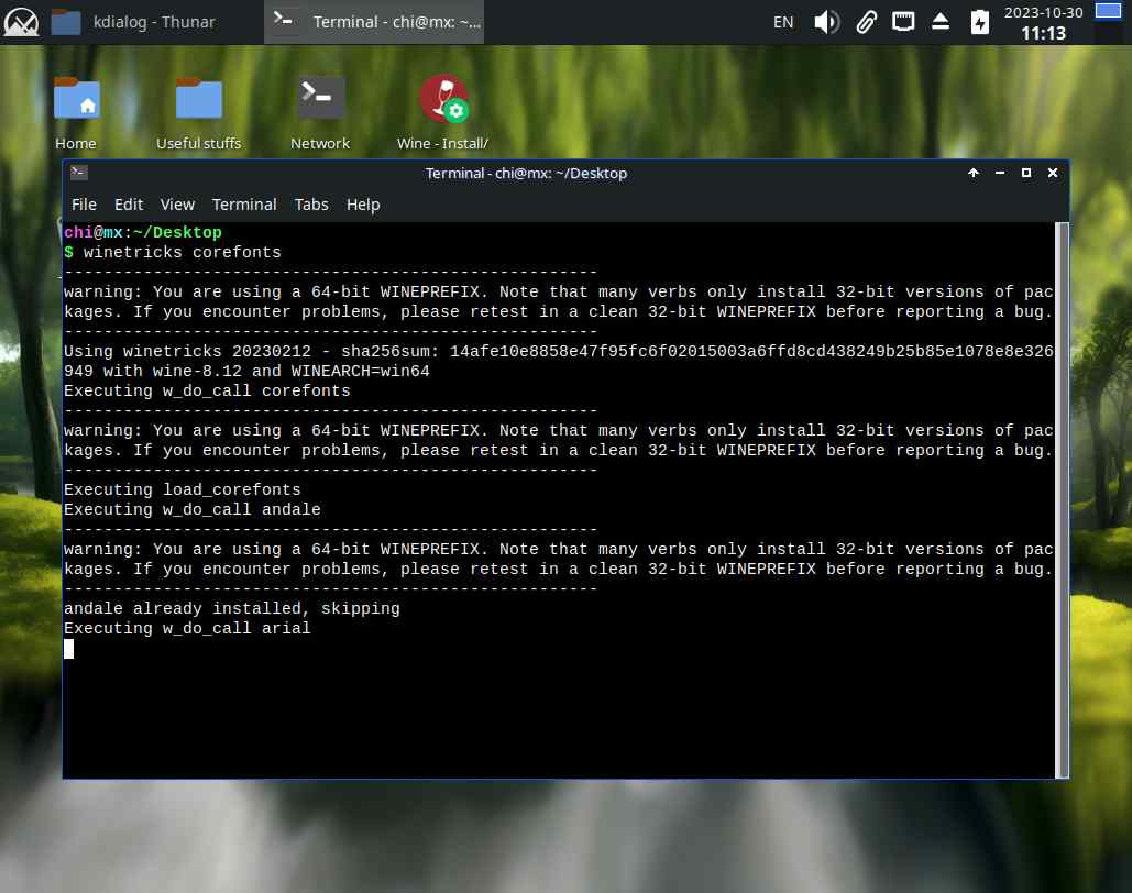 На этом моменте сделал точку отката, ведь дальше нужно будет потанцевать с бубном, и придётся выбирать, с каким именно бубном танцевать, ведь winetricks сам по себе непригоден для нормального использования...