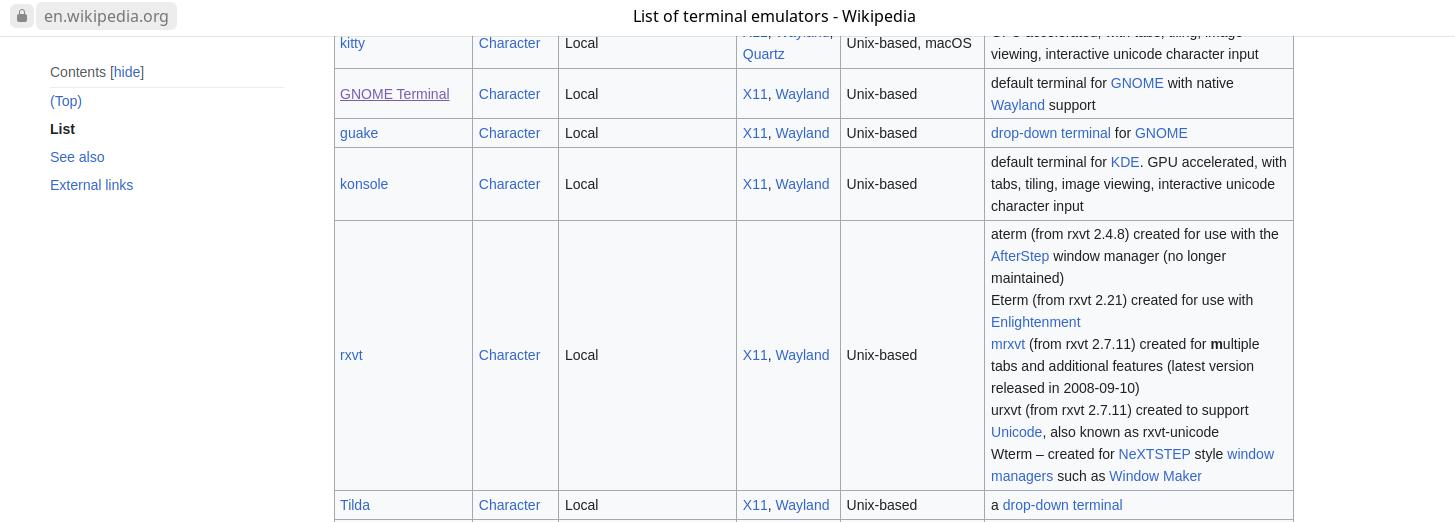 Так как я хочу охватить все основные терминалы, неплохо бы поискать информацию про них, хотя на самом деле в Wikipedia далеко не всё перечислено:
