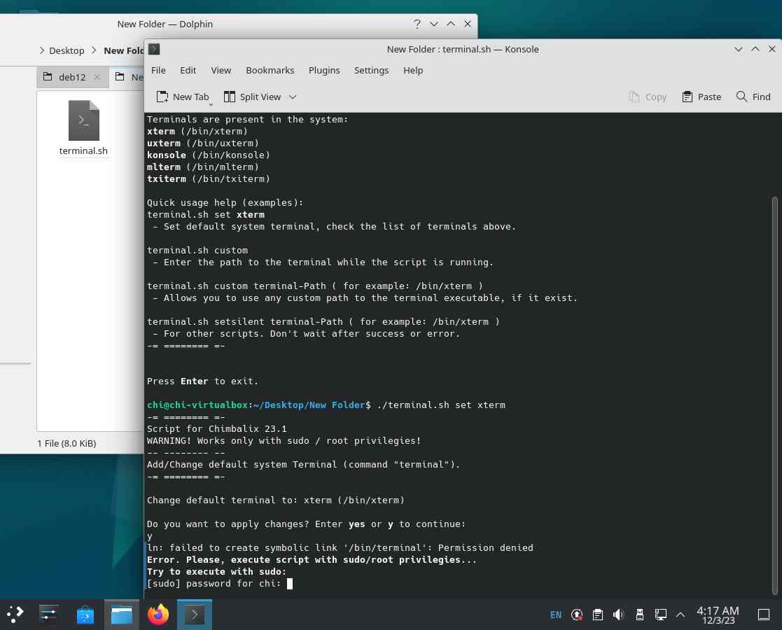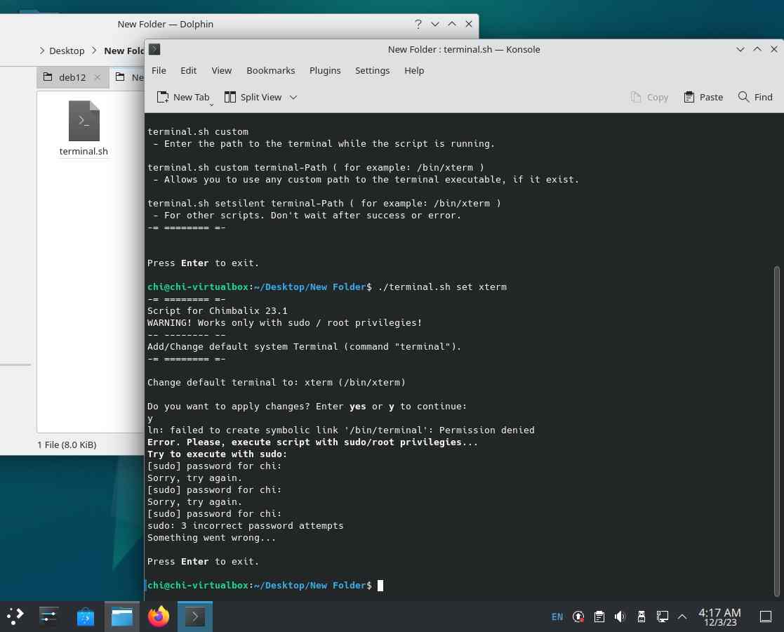 А потом перенёс скрипт в Debian 12.2 KDE для тестирования, но я забыл свой "root" пароль...