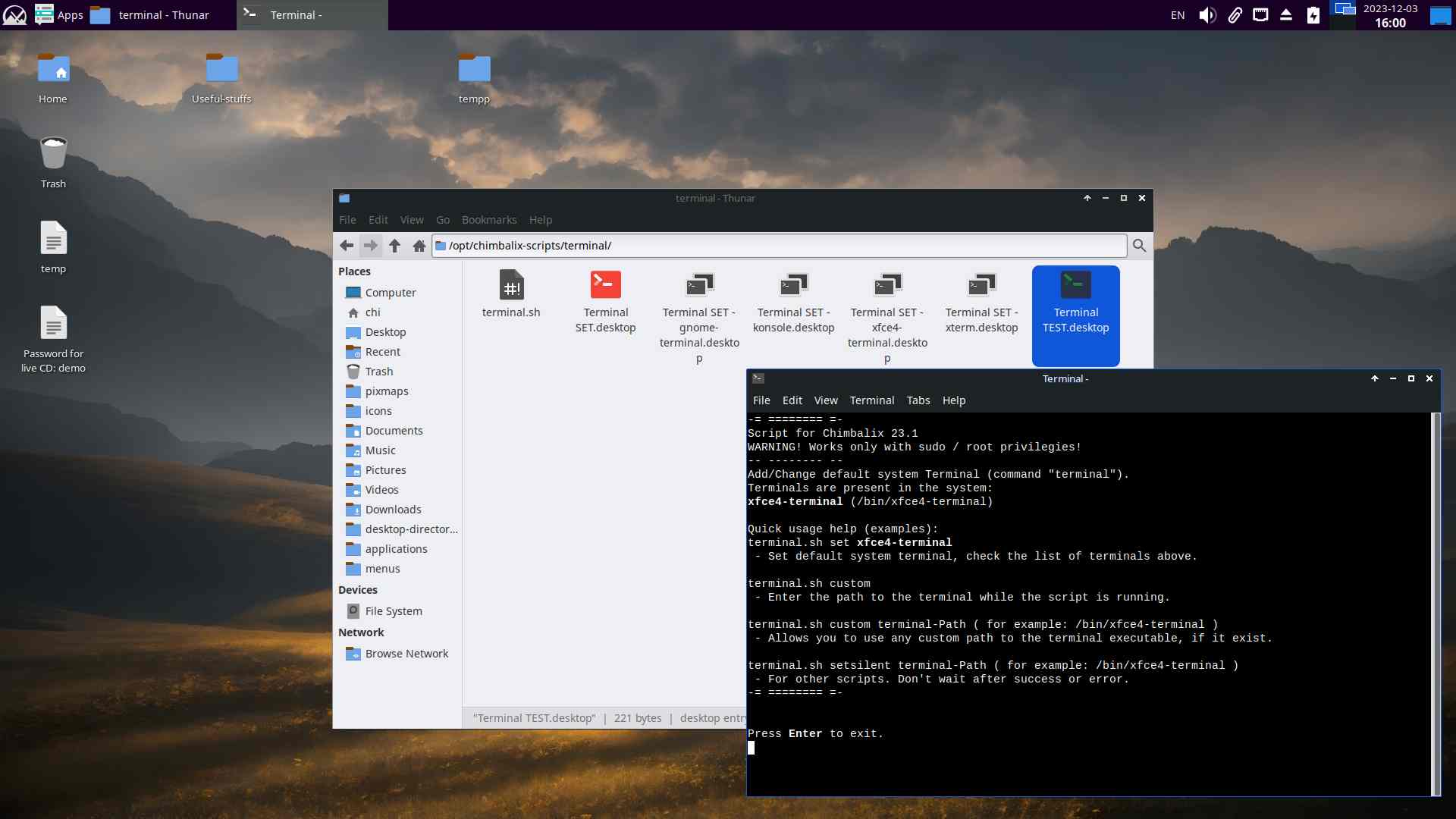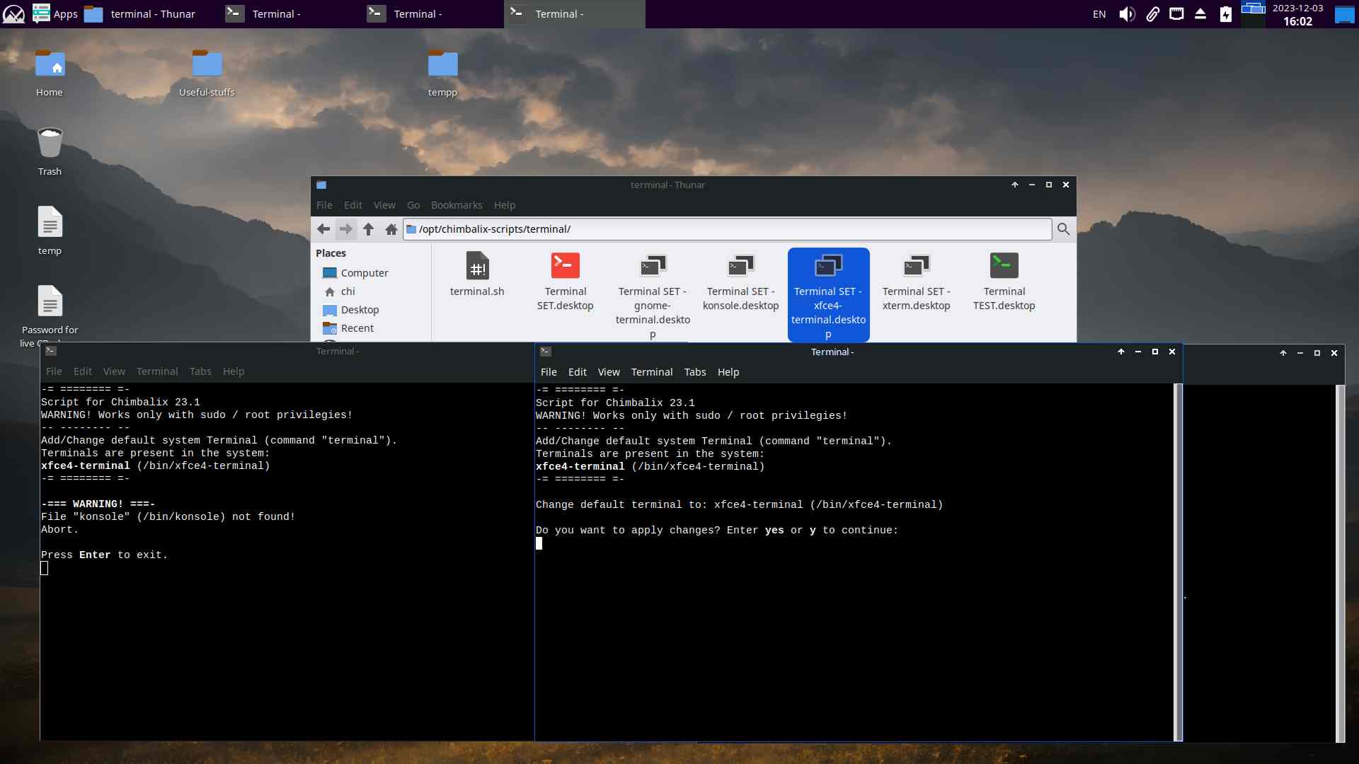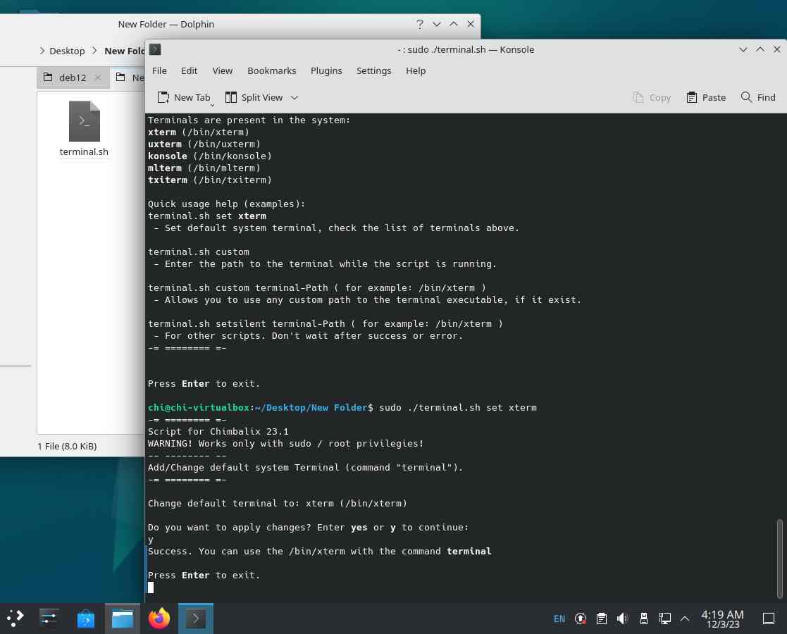 Итого получился небольшой скрипт, который значительно упрощает смену стандартного терминала в системе, осталось всё протестировать и доработать некоторые мелочи: