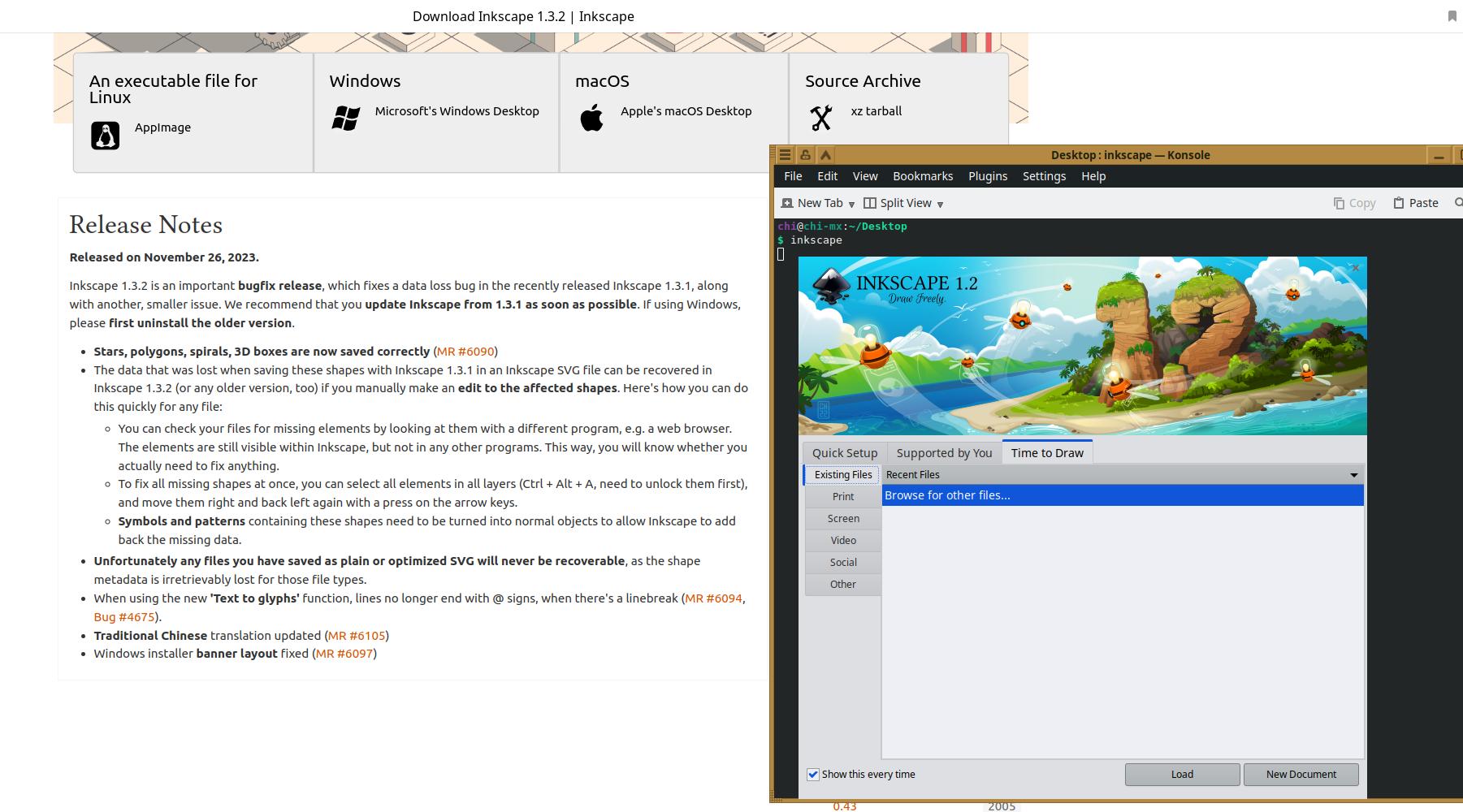 Четвёртая причина это устаревшие версии софта в актуальных репозиториях, вот прямо так захожу на сайт разработчиков Inksckape, и вижу актуальную версию 1.3.2, тем временем из репозиториев установилась в систему прошлогодняя версия 1.2.2: