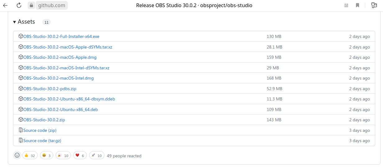 Для примера возьмём OBS Studio, и тут я заметил, разработчики данного приложения похоже умеют работать над ошибками, ранее я их упрекал за разорванные DEB файлы под Ubuntu разных выпусков, и вот буквально на днях они сделали релиз, в котором есть единый установочный файл "Ubuntu-x86_64":