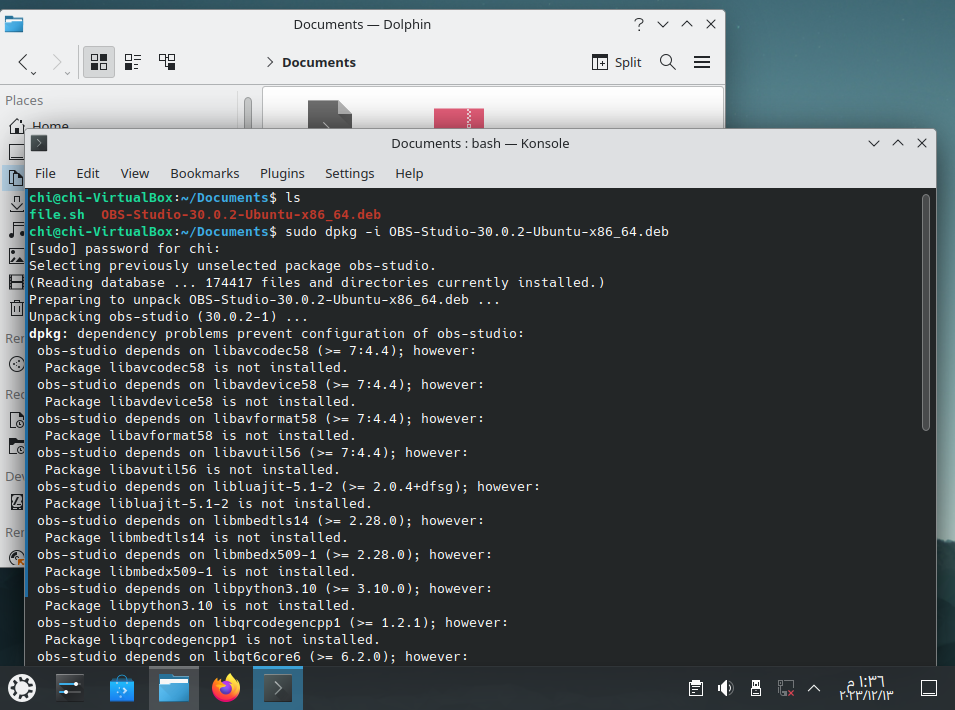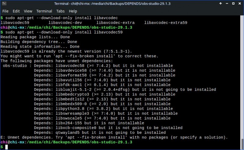 Да, я проверял в дистрибутиве Kubuntu 23.04, ибо Ubuntu 22.04 сама себя поломала принудительными автоматическими обновлениями, даже терминал больше не работает, так что пришлось использовать ответвление от "оригинала"... Но сути это не меняет, как пользователь, я не могу взять с собой флешку с установочным DEB пакетом OBS Studio и установить на каком-либо автономном ПК без интернета.