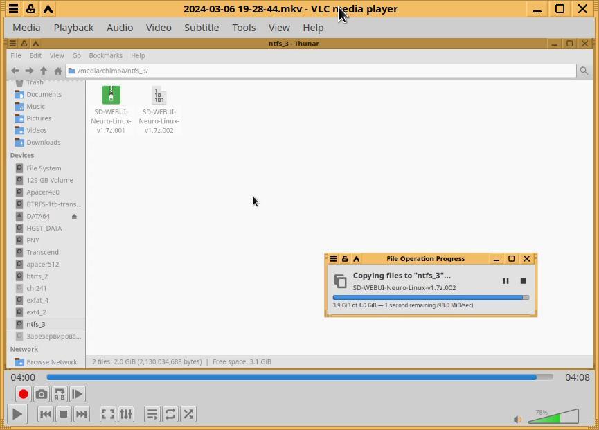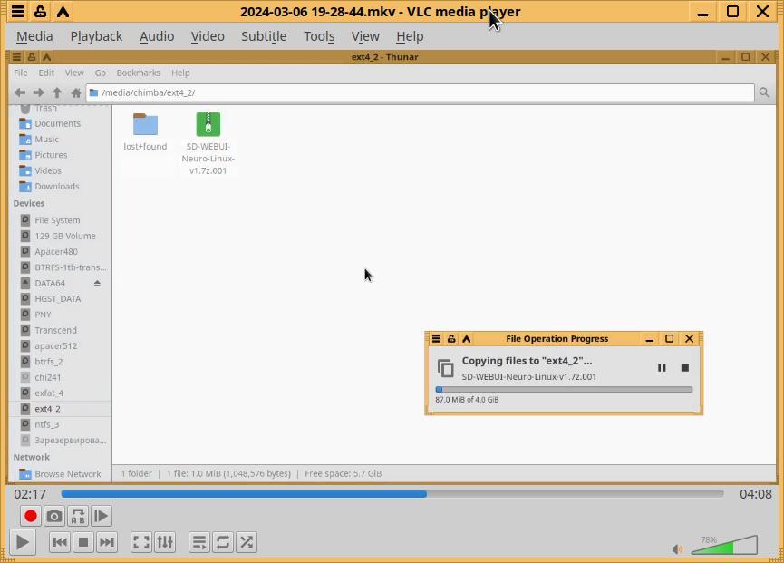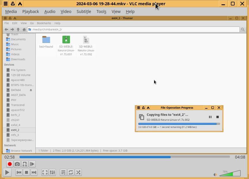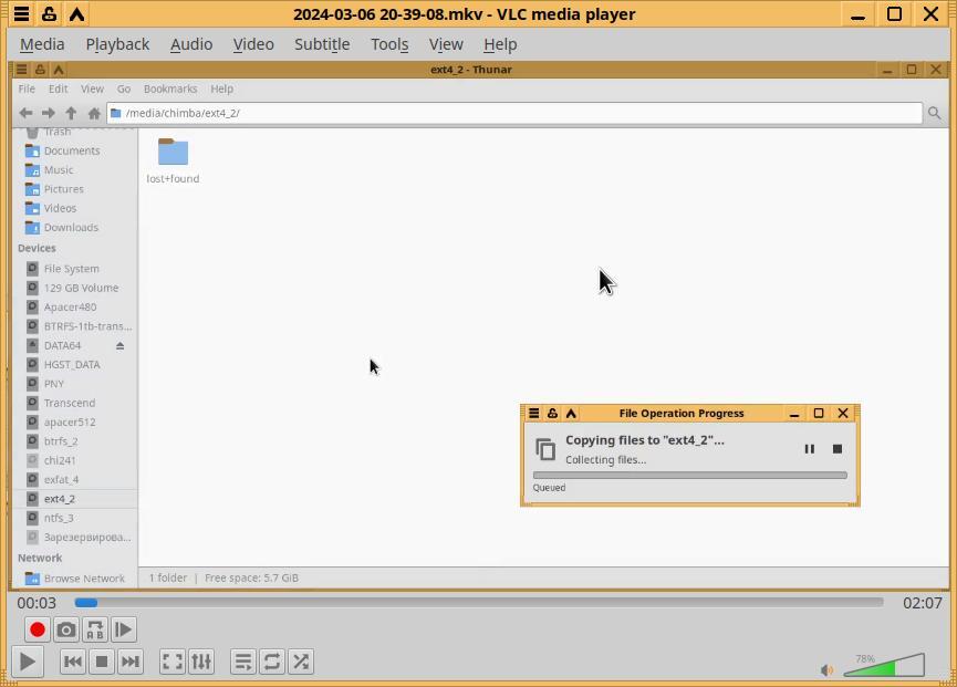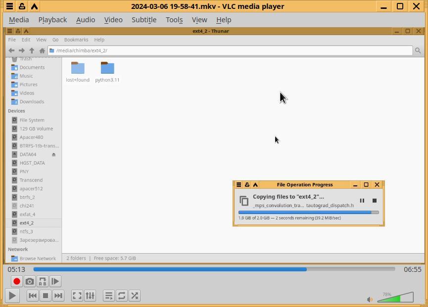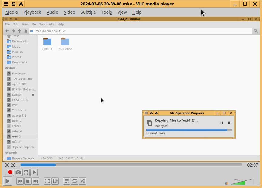 EXT4 справилась за 38 секунд, что даже больше, чем при копировании на раздел BTRFS:
