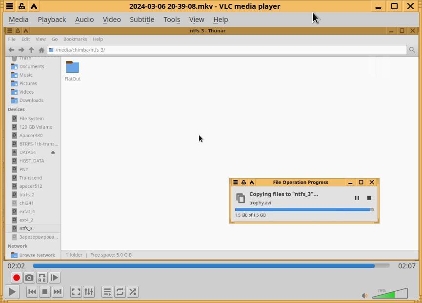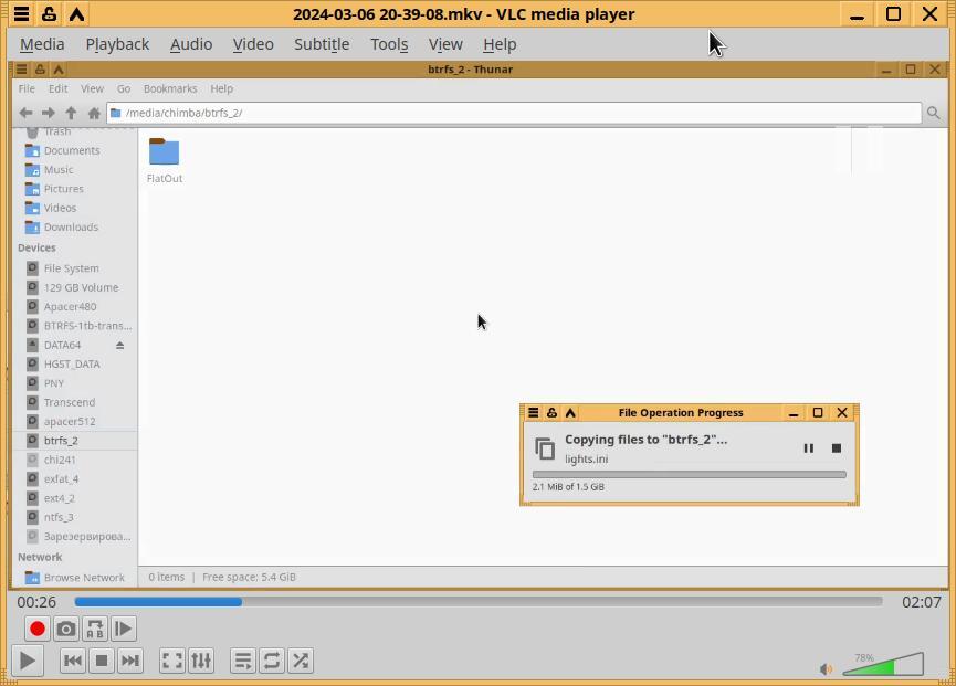 Причём важно заметить, на отвал USB 3.0 это не похоже, ведь с другими файловыми системами на том же диске скорость значительно превышала лимит USB 2.0, да и копирование на другой USB 3.0 HDD с файловой системой NTFS прекрасно работало в полную скорость диска, только BTRFS разделы работали крайне медленно, так что это выглядело весьма странно, и всё указывало именно на файловую систему: