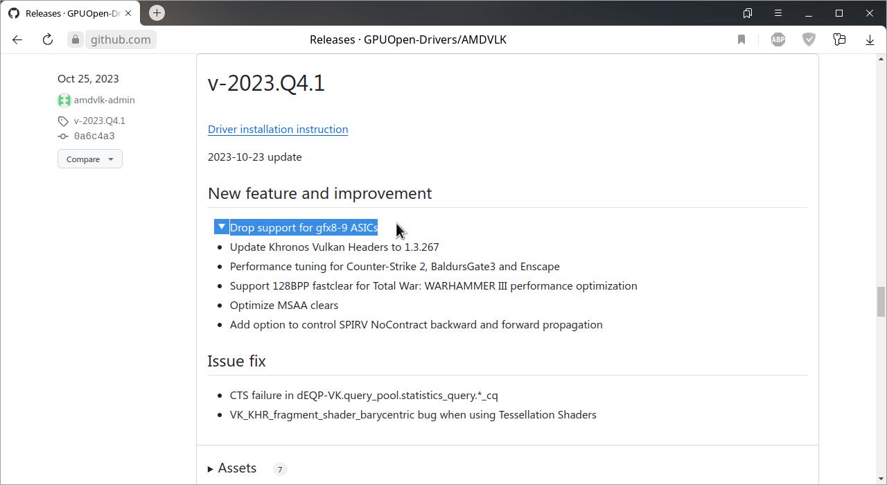 Ну и напомню про то, как недавно бросили пользователей видеокарт Polaris/Vega (Radeon RX 500/Vega) c драйвером AMDVLK (Vulkan API), пострадали конечно же любители Linux, таким же образом кинуть пользователей Windows, судя по всему, побоялись: