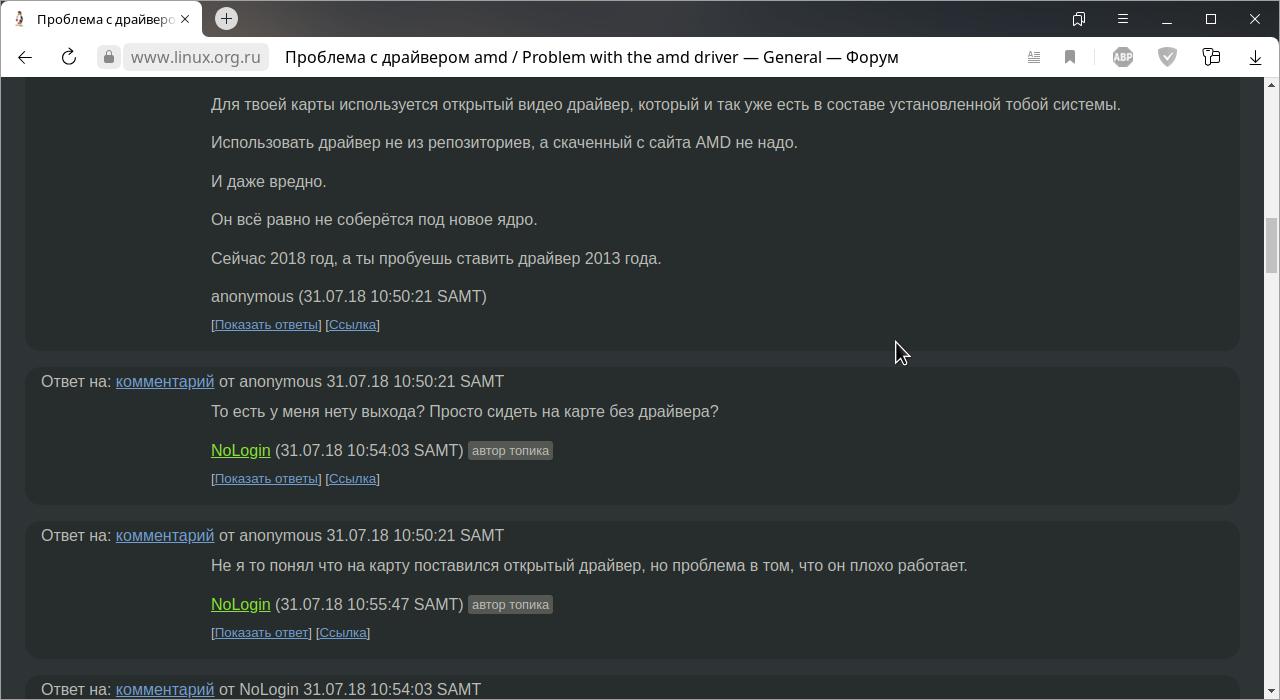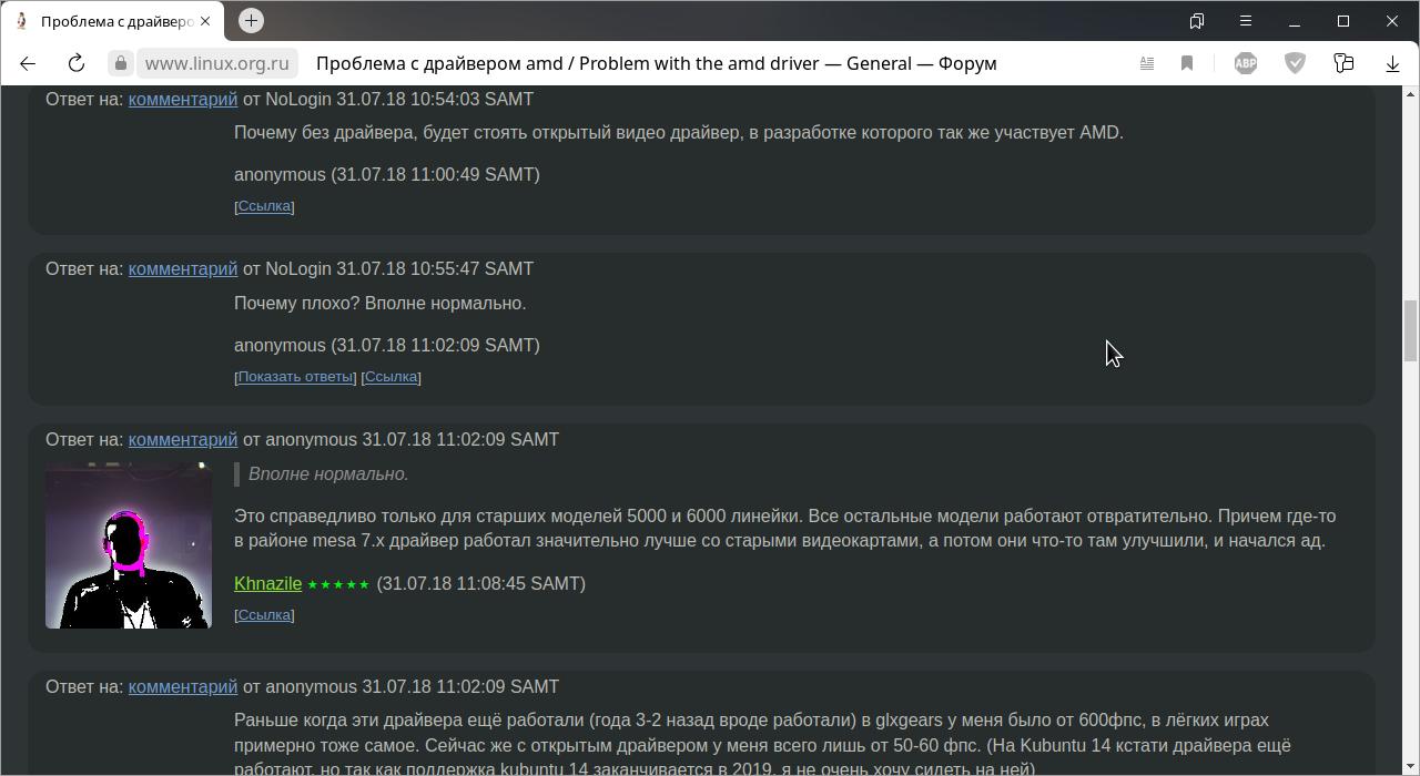 Так что с драйверами в линуксах много проблем, какие бы сказки не рассказывали приверженцы "пингвина", и в зависимости от дистрибутива/оборудования, набор "прелестей" отличается, что зачастую очень даже серьёзный повод для переустановки Linux, особенно после неудачных танцев с бубном в попытках заставить полноценно работать AMD под линуксом.